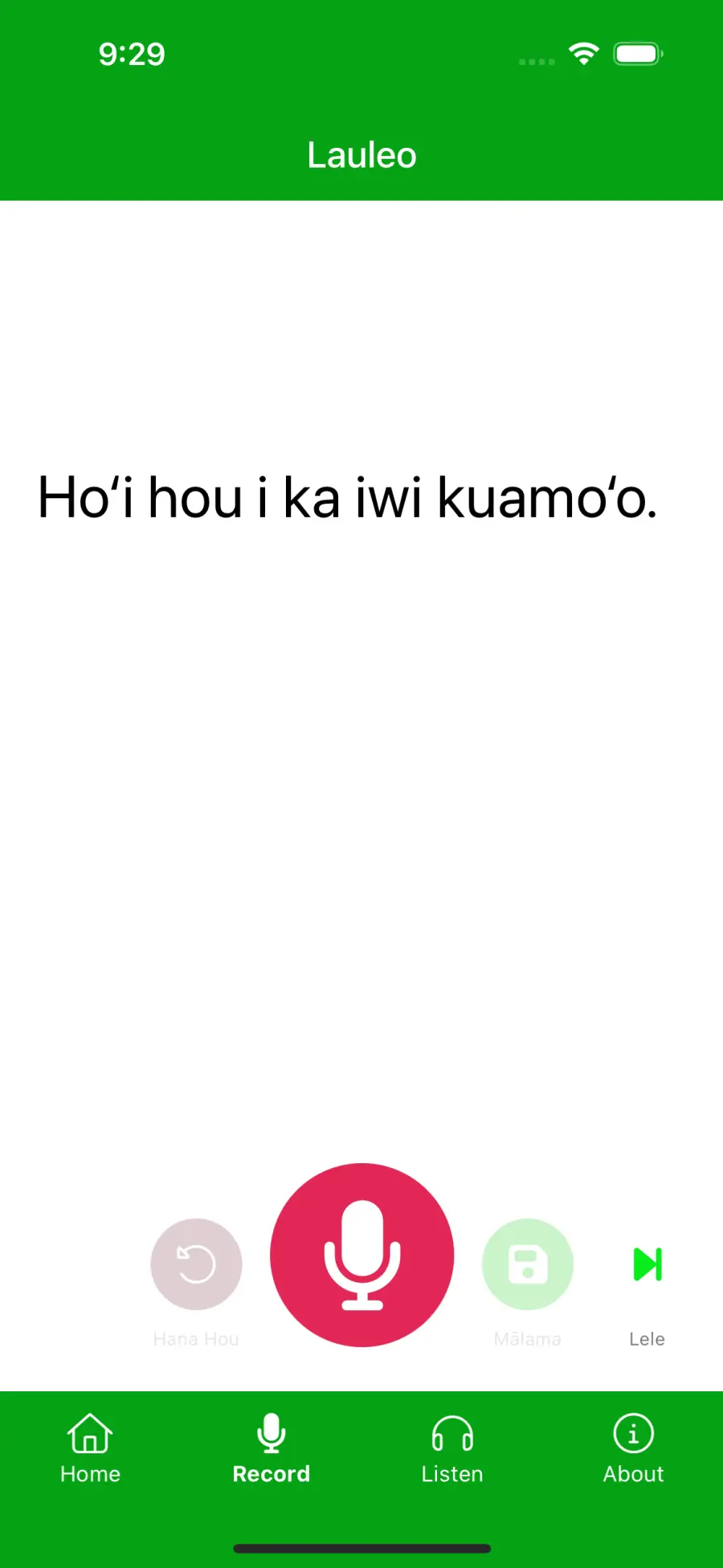 Building that technology requires a robust database of recordings from ʻōlelo Hawaiʻi speakers. The Lauleo app is designed to capture these kinds of recordings that in turn will be used to teach computers to hear ʻōlelo Hawaiʻi and turn it into text. Ke Kula ʻo Kamehameha and Kanaeokana are among its backers. So are Awaiaulu and Ka Haka ʻUla O Keʻelīkōlani, the U.H. Hilo College of Hawaiian Language.