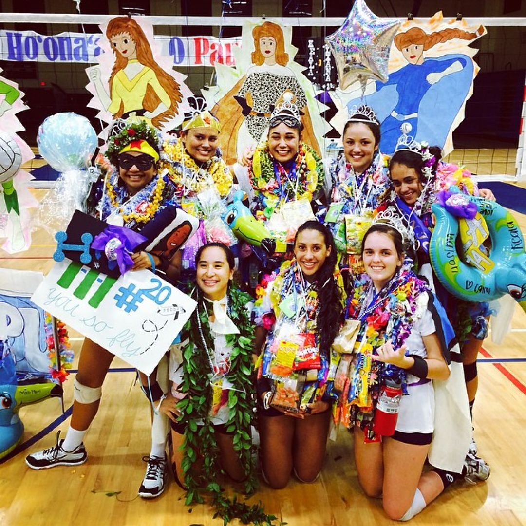 The Kua Paiʻea Class of 2015 graduate with her teammates on senior night.