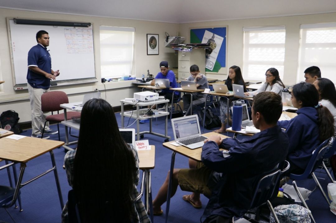 The Mānoa Academy is one of the many dual-credit and enrollment opportunities started at the KS Kapālama campus recently, to add to an already large amount of offerings in advanced placement classes, which can also yield early college credit. In the fall of 2015, KSK offered PACS 108, Introduction to Pacific Island Studies, in partnership with Kapi‘olani Community College, with students receiving college credit. English 100 was also offered through KCC as a blended learning course with teachers and online components in the spring of 2016, and Political Science 110 will be offered in the spring of 2017 through UH Mānoa with ʻUmi Perkins again teaching the course.