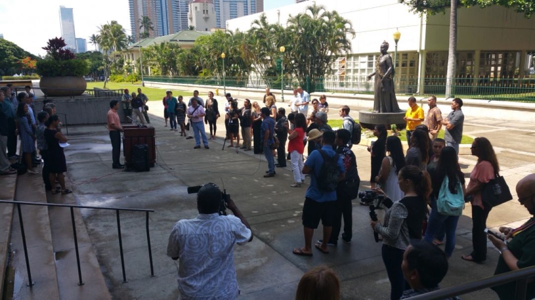Academy students watched a press conference at the capitol, where Rep. Chris Lee announced the termination of the NextEra-Hawaiian Electric merger.