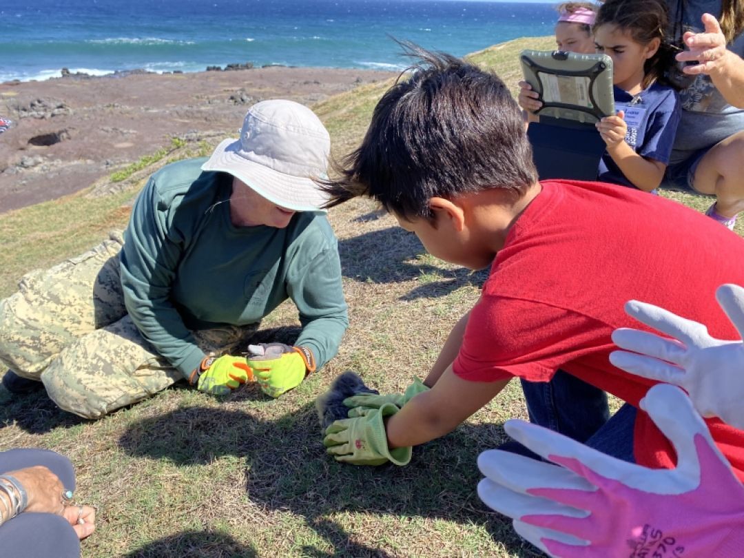 On October 17, 2019 our second graders got to work with Maui Nui Seabird Recovery Project to band ʻUaʻu Kani chicks! The children worked closely with scientists to learn about the ʻUaʻu Kani and their habitat. They got to take a close look at a burrow and at the ʻUaʻu Kani.