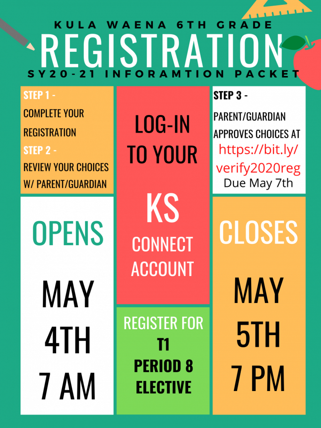 All current Kamehameha Hawaiʻi 5th, 6th, and 7th graders will be able to register online in KS Connect.
