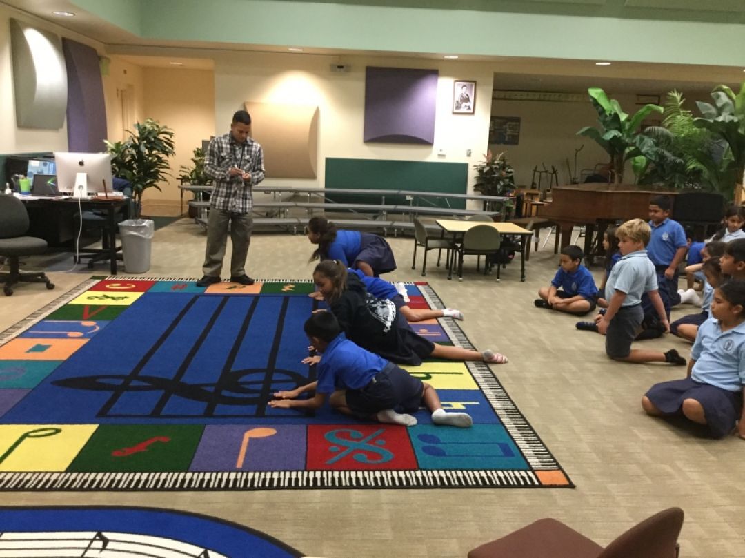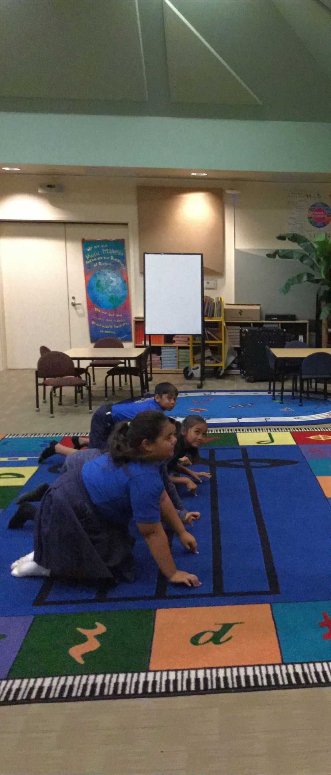 Students eagerly wait for Mr. Lum Ho to shout out a note so they can run and point to the correct scale!