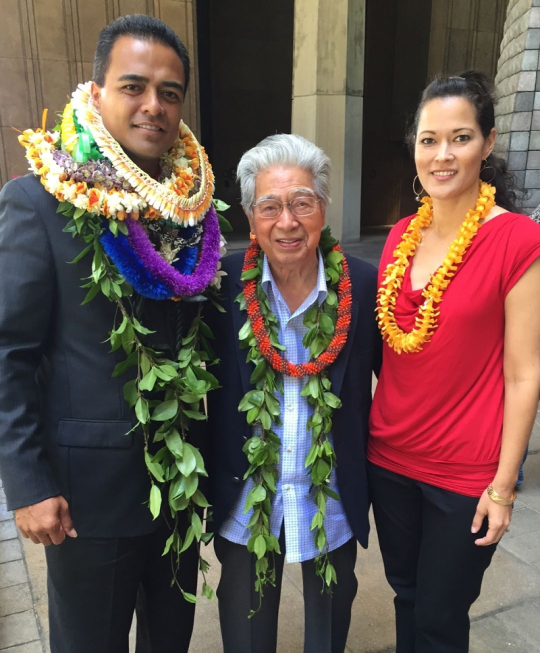 KS Senior Director of Statewide Operations Kekoa Kaluhiwa - shown here with his wife Cheryl and Sen. Akaka - says that the senator taught him the importance of respecting people before politics.