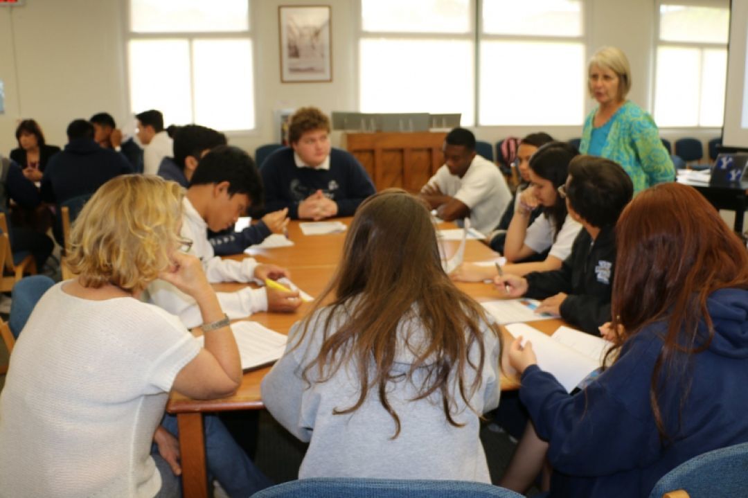 Students participated in groups to share ideas, formulate solutions to challenges, give and receive feedback, and brainstorm on creative ways that a business can give back to their community.