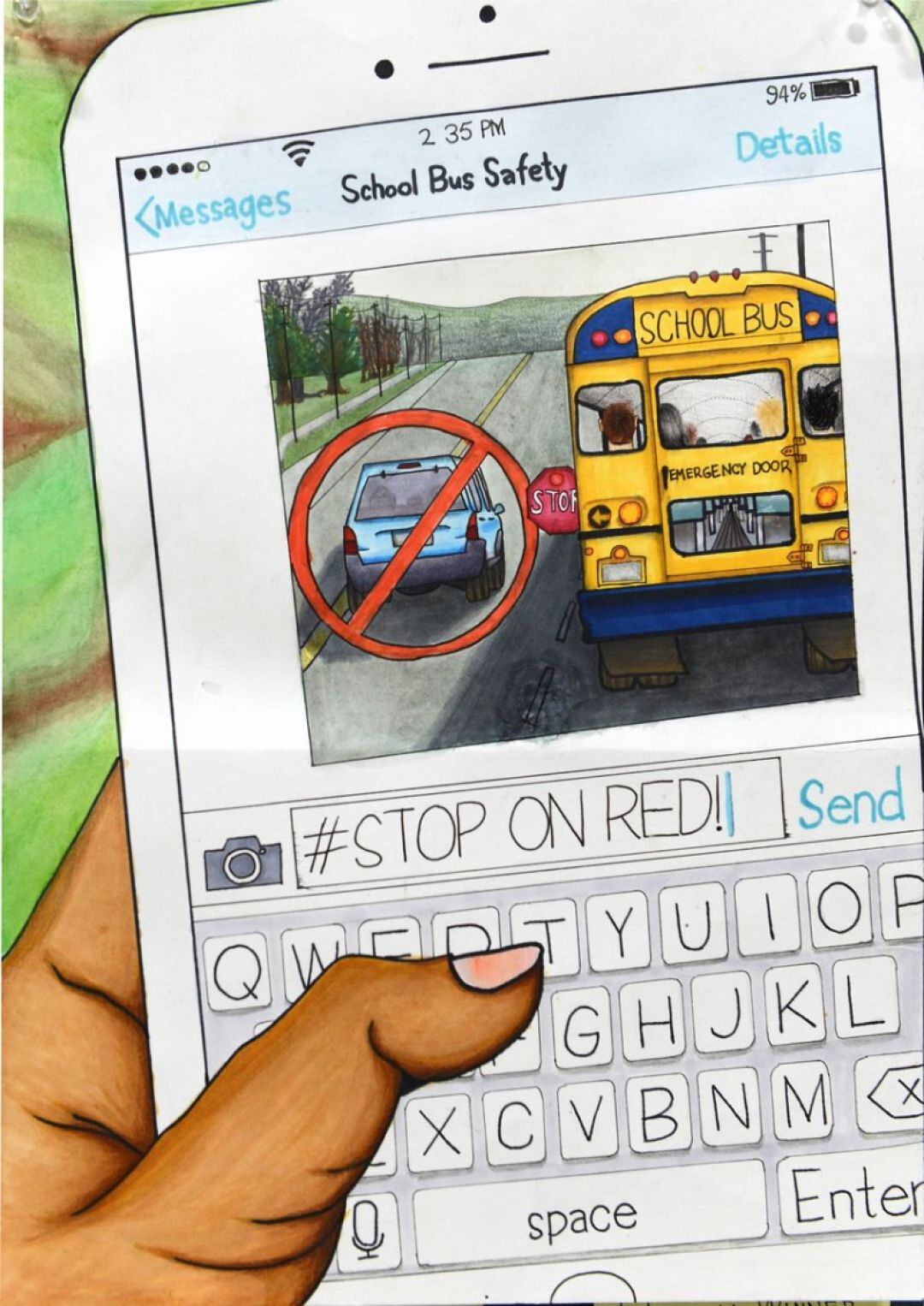 Kapolei Middle School student Branden Pagurayan created the poster for the national #StopOnRed National Bus Safety poster.