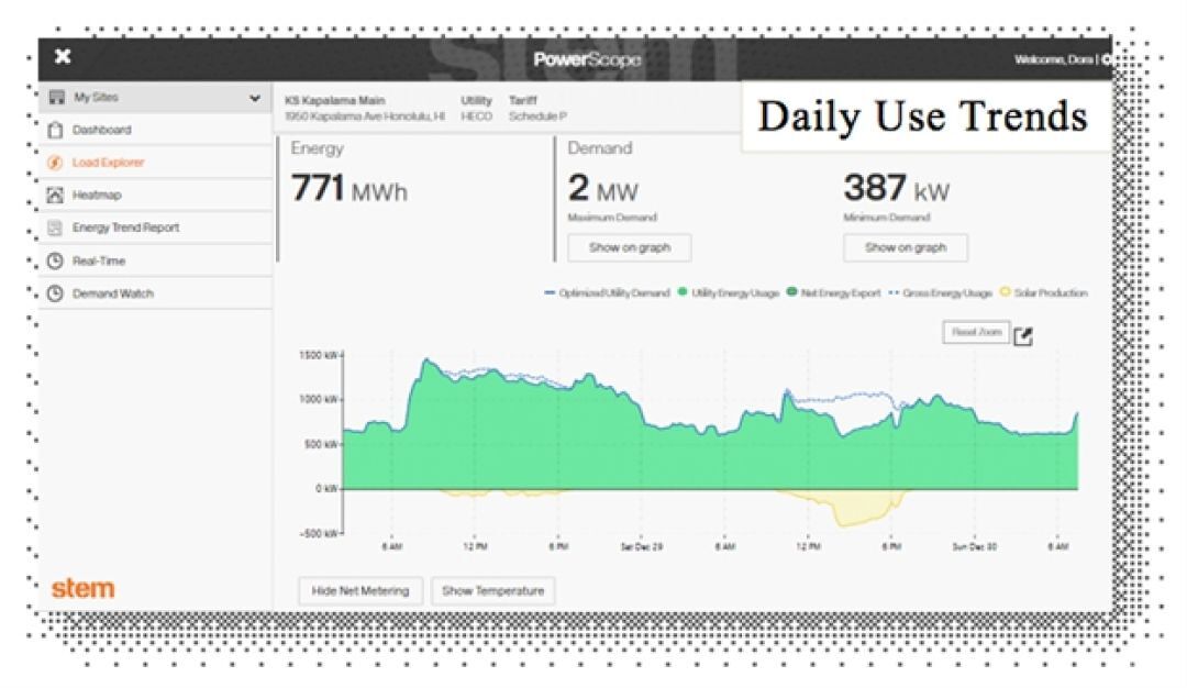 KS partnered with Hawaiian Electric Companies and Stem, Inc., a California-based company that pairs artificial intelligence with advanced storage systems.KS’ operations staff across the three campuses worked with the partners to install new sensors known as PowerMonitors on electrical equipment and solar power systems on campus.