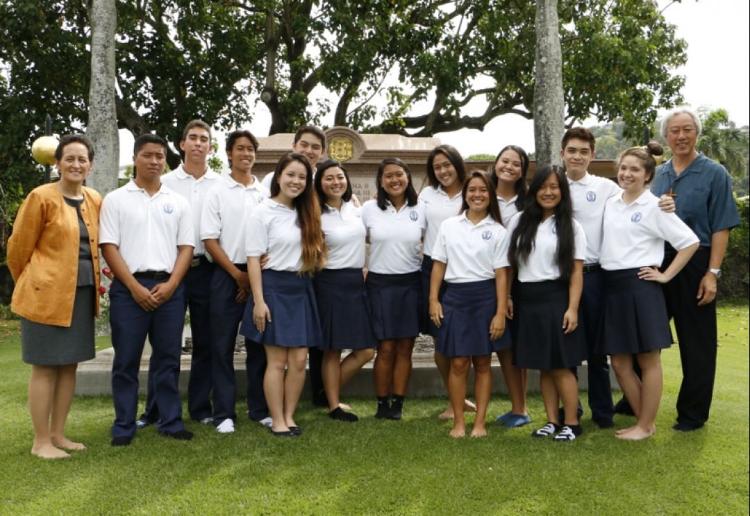 Delima and KSM Chaplain Kalani Wong accompany students to Mauna ʻAla, the final resting place of Princess Pauahi.