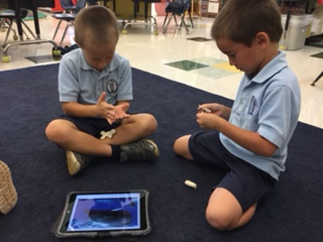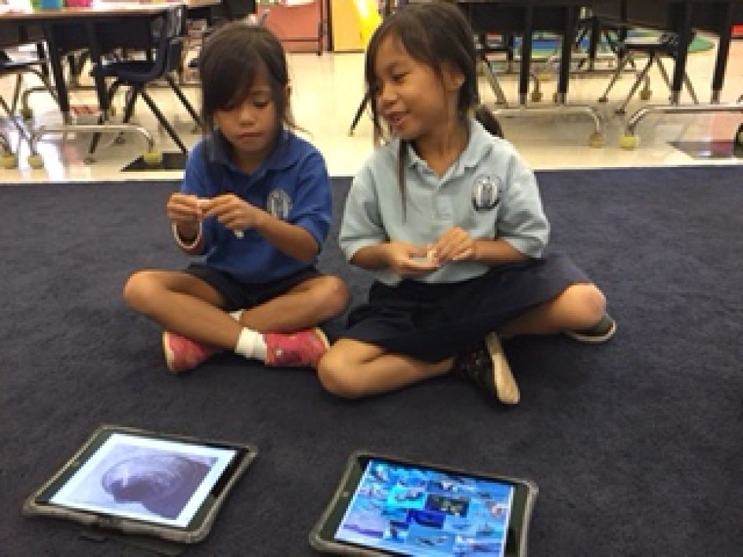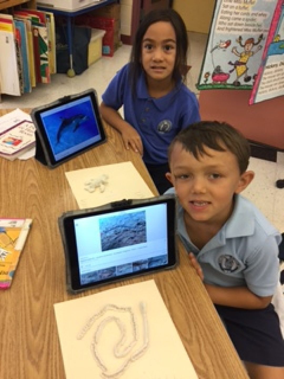 Kindergarten students in Kumu Hondaʻs class have been busy learning about ocean animals. They went on a whale watch and learned about endangered ocean animals. They also created a list of all the ocean animals that they could think of. They signed up for one animal with a partner and used their iPads to search for ocean animal pictures. After studying the pictures, they created a model of their animal using play dough. They are learning to have a greater respect for the ocean and the animals that live in it.