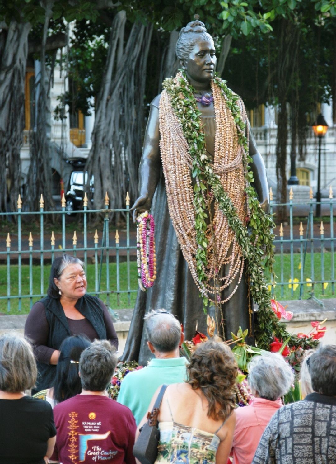Honolulu Attorney Yuklin Aluli tells the story of what happened after the 1893 overthrow at the end of the walking tour.