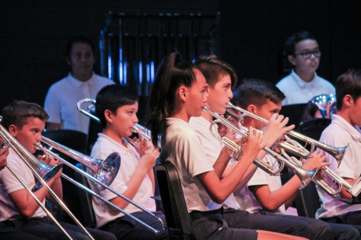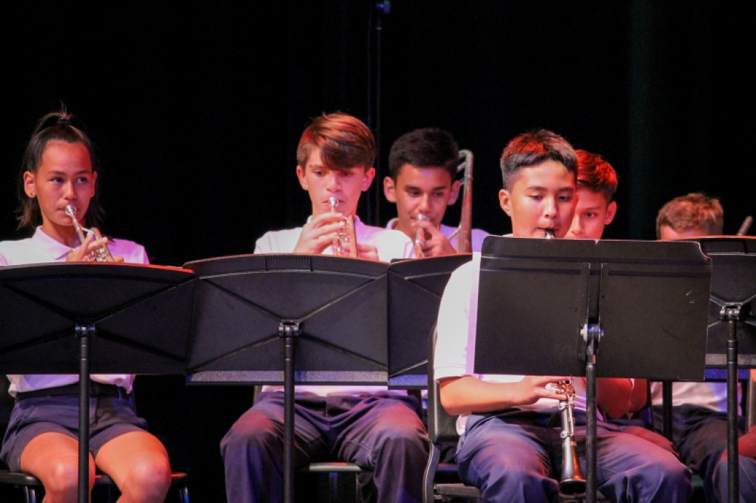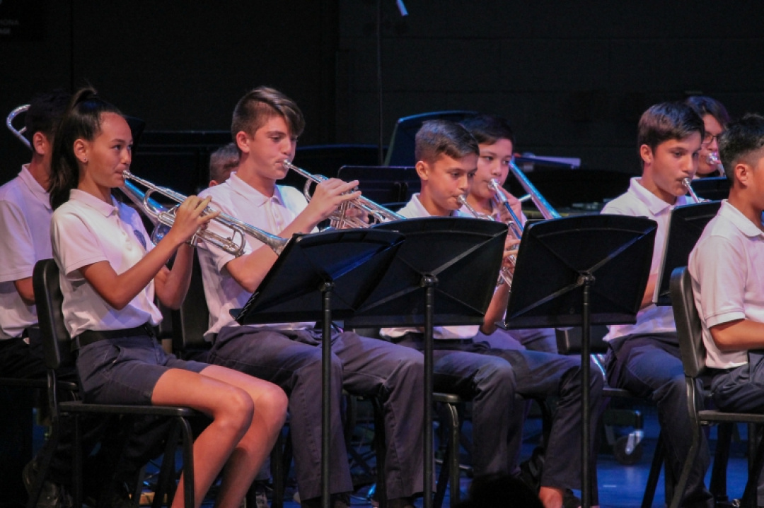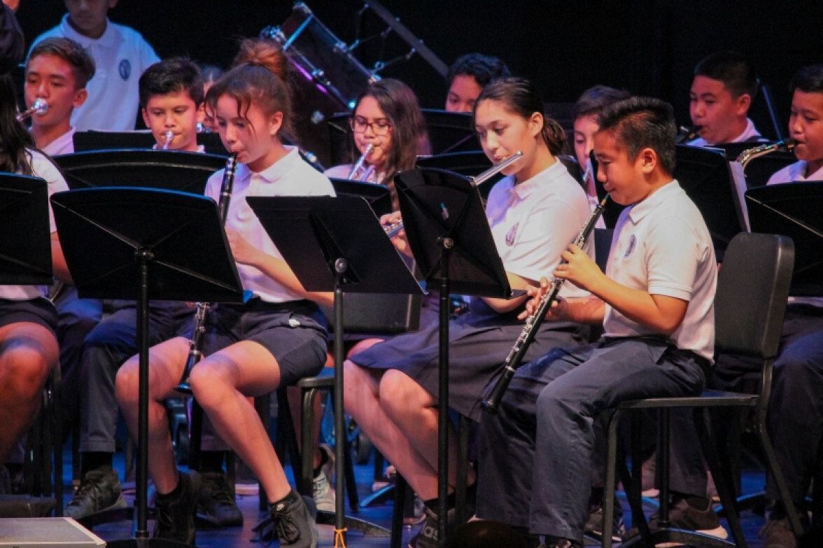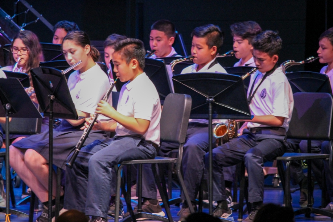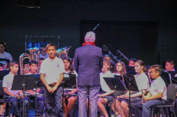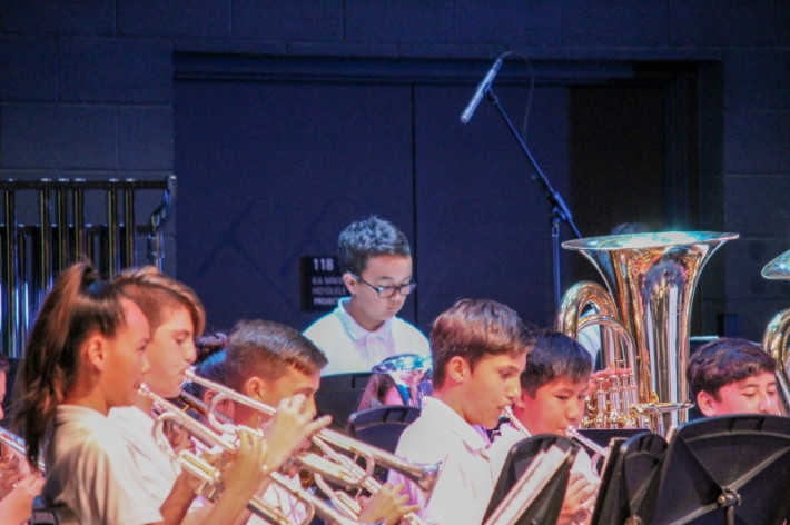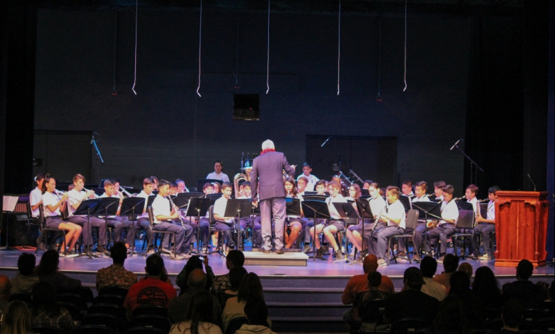 Our Hale was filled with music from our MS band Thursday night as they performed a 2 song set to open for the HS Jazz/Rock Ensemble and Concert Band. Lead by Kumu Aquilina our haumāna performed Bring on the Band and Little Drummer Boy. Our haumāna took a bow after a beautiful performance and it was well deserved. Mahalo to Kumu Aquilina to his dedication to our haumāna.