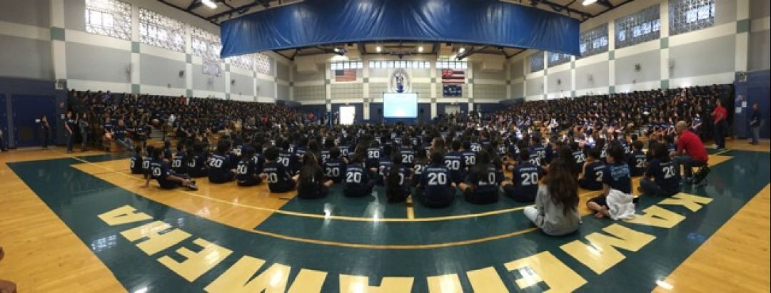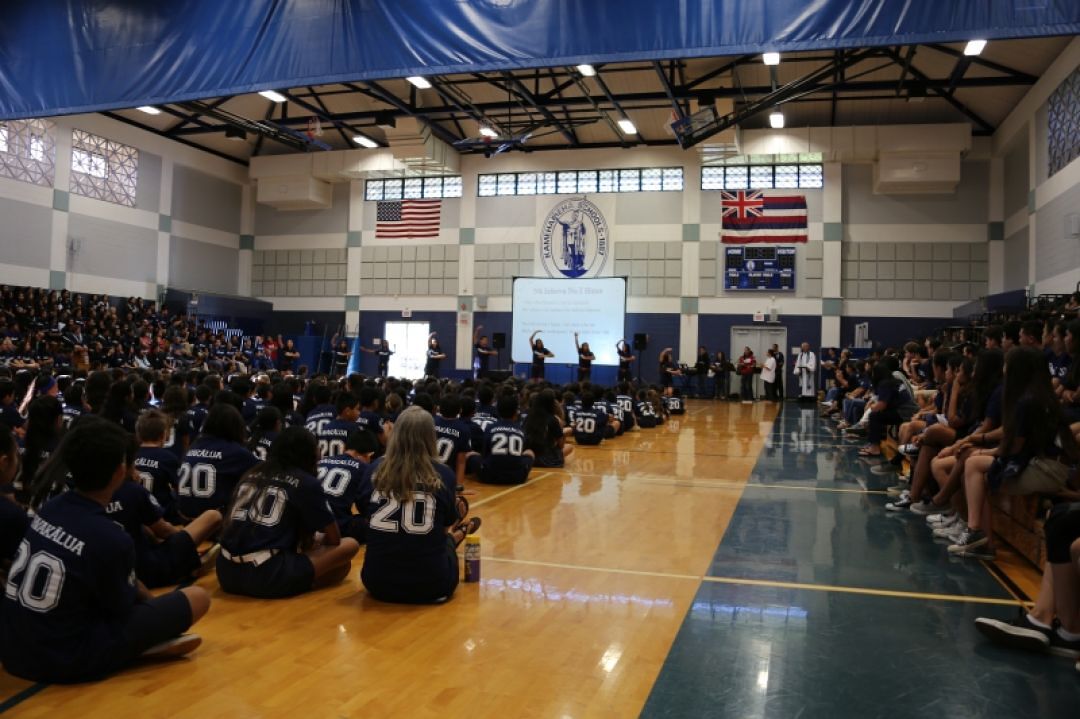 The entire student body got together in Kahekili Gymnasium for an all-campus chapel to start the day.