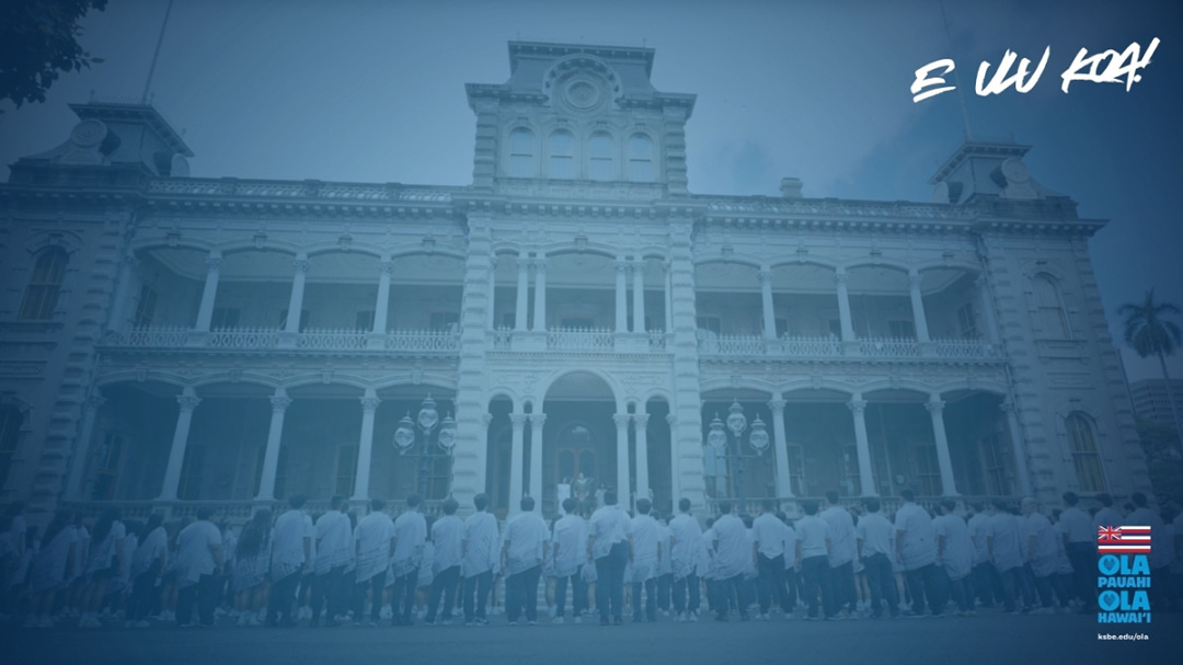 Today, as our brothers and sisters, fellow kumu and haumāna, gather on the grounds of Hale Aliʻi ʻo ʻIolani, we from this mokupuni—the source of Kamehameha’s lineage and origin of his kingdom—will lend our spirits in support and pour our aloha for our lāhui into every opportunity given to learn and deepen our understanding of our unique purpose. From this, as from all challenges, we will emerge stronger as a kauhale, more grounded in who we are, and more resolute in defending the ea of our lāhui today.