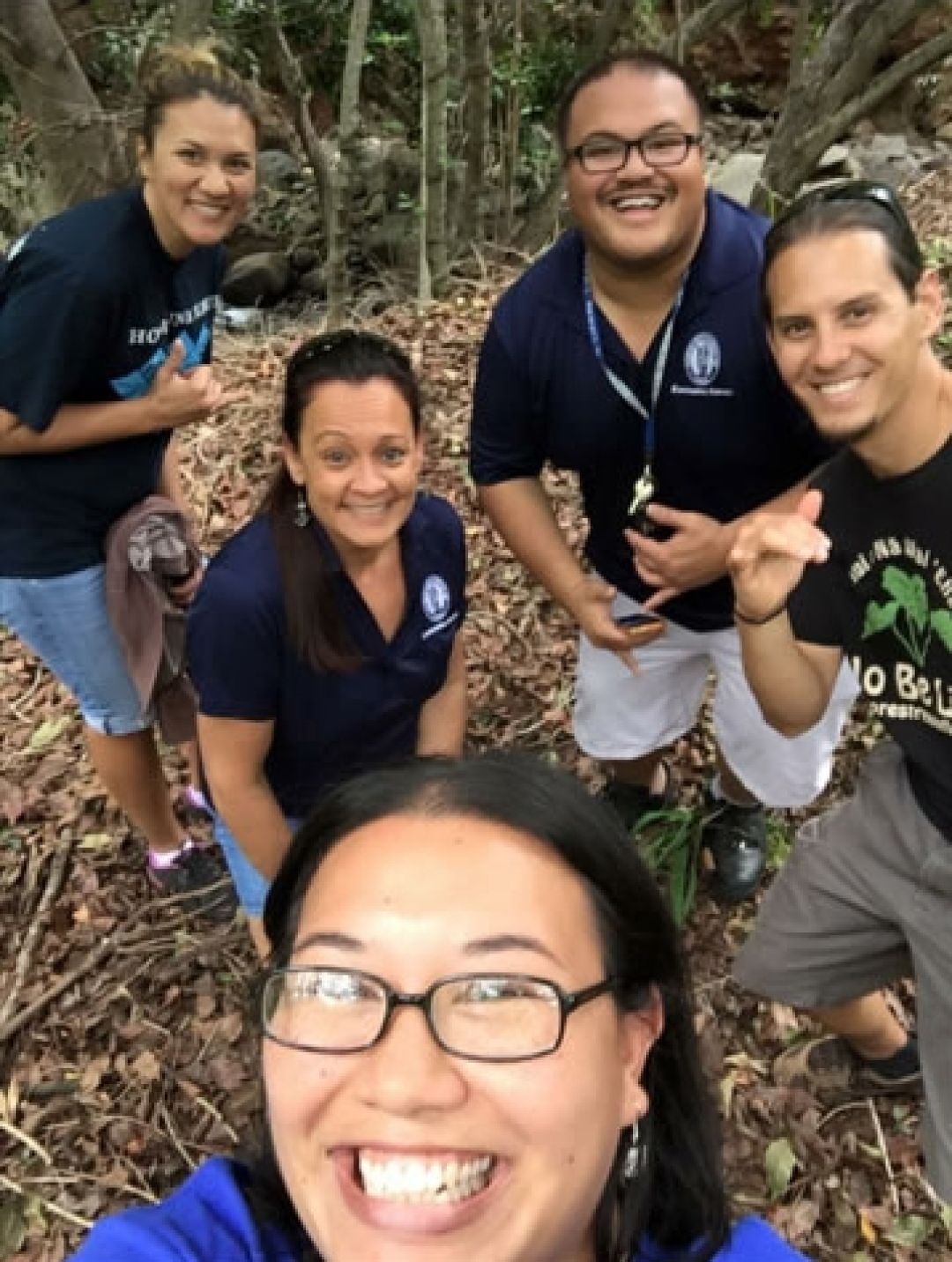 Pe‘a creates Hawaiian language and cultural curriculum for KS’ Maui- Kūamahi and Kealakūlia programs. Above Kanoe Kamaliʻi-Ligsay snaps a selfie of her 2015 colleagues on Pauahi legacy lands in Kahoma, Maui. They are (l-r): Keala Kaʻōpūiki-Santos, former staffer Kēhau Munos, Peʻa, and Hōkūao Pellegrino.