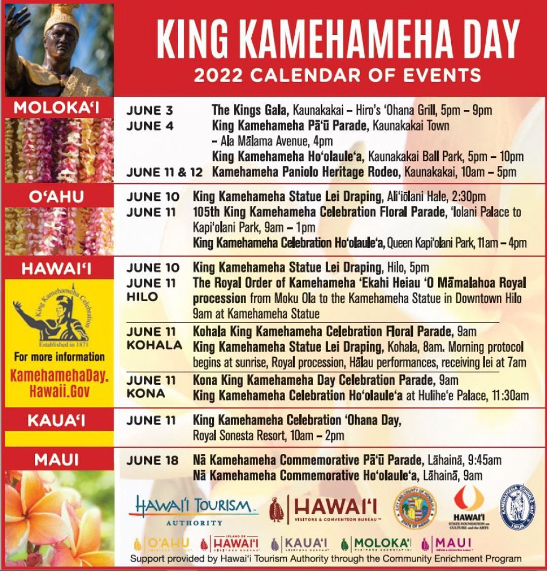 E ka ʻohana Kamehameha! Visit the State Foundation for Culture and the Arts website for more information about the events happening throughout the pae ʻāina! See Kēhau and the many others involved in preserving pāʻū riding during the King Kamehameha Celebration Floral Parade in Honolulu on Saturday, June 11 from 9 a.m. to 1 p.m. Bring your ʻohana and wave your hae Hawaiʻi!