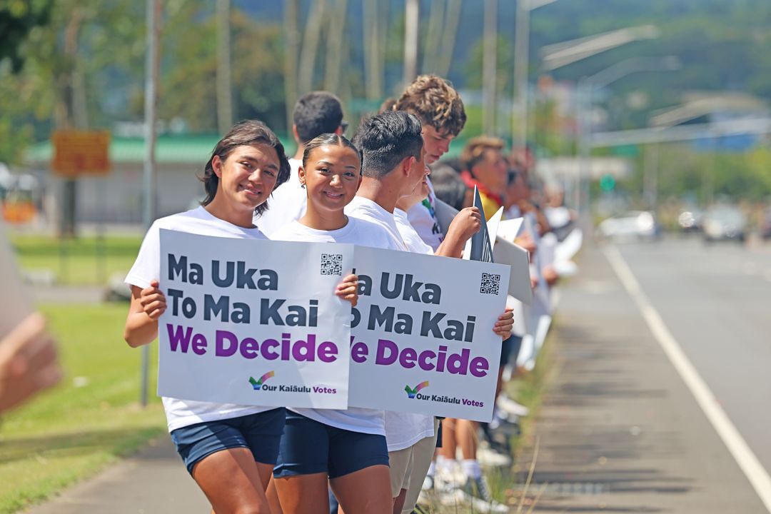 This effort is a part of a larger youth engagement movement of Our Kaiāulu Votes! designed to give students a platform to encourage voters to participate in this year's election. Activities have included panel discussions online at at the recent CNHA convention, and Walk to the Box sign waving events on all islands.