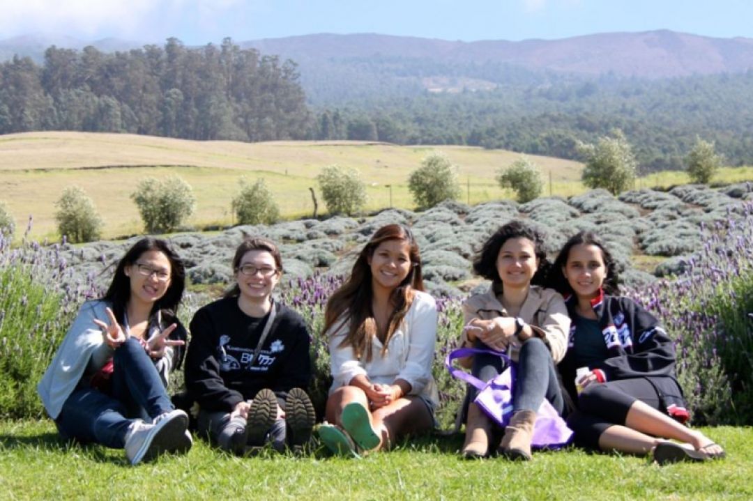 Senior Brianna Abe visits the Aliʻi Kula Lavender Farm with her new friends from Tahiti.