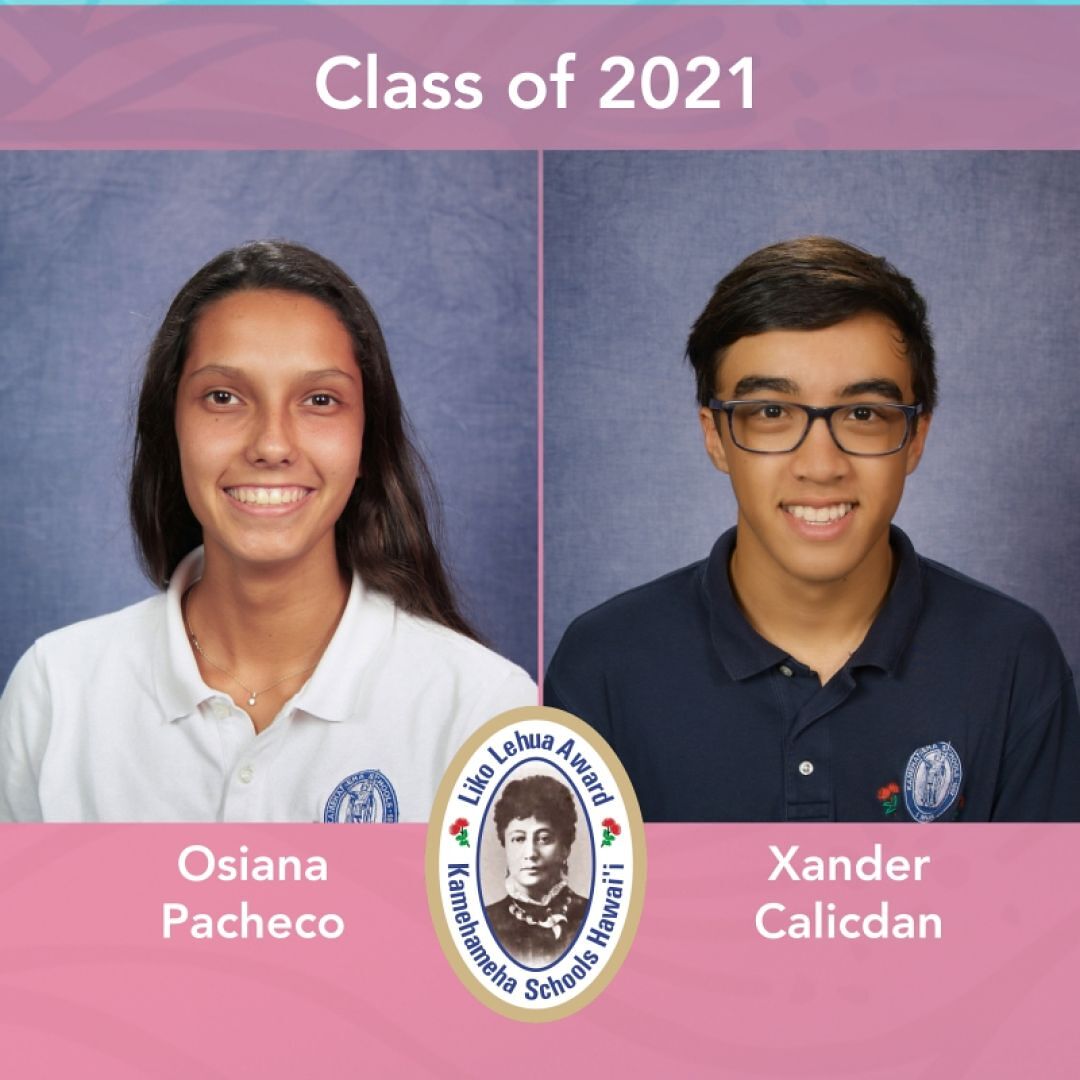 Osiana Pacheco and Xander Calicdan earned the Liko Lehua Award for the class of 2021.