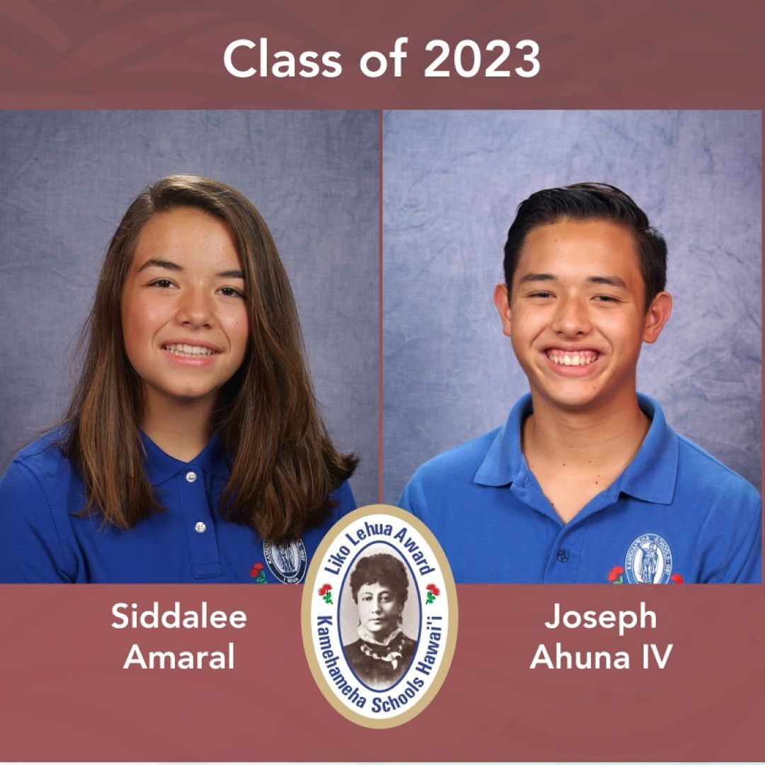 Siddalee Amaral and Joseph Ahuna IV earned the Liko Lehua Award for the class of 2023.
