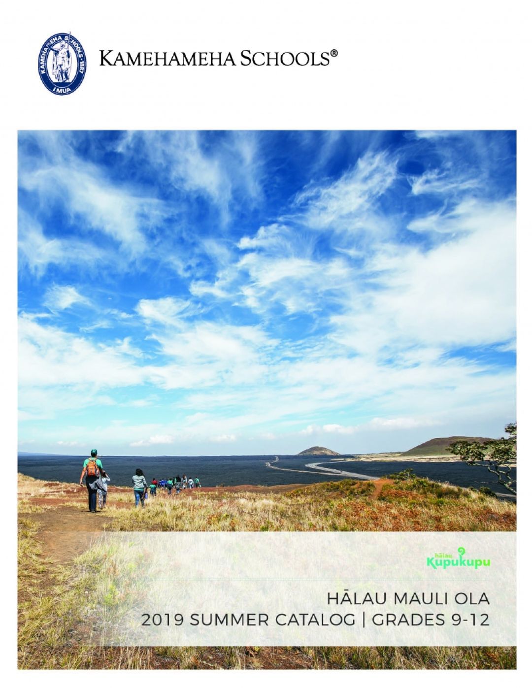New this year, high school courses will be listed in a separate catalog published by Kula Kiʻekiʻe. Courses will be offered for credit advancement, credit recovery, and college and career readiness through Hālau Mauli Ola, Kula Kiʻekiʻe’s summer session.
