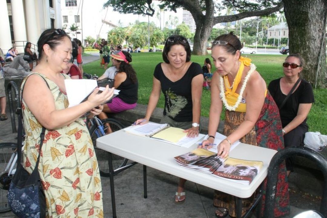 KS is a member of the Hawai‘i Pono‘ī Coalition, sponsor of the walking tours. Above KS staffers Marsha Bolson and Pi'ilani Hanohano greet guests.