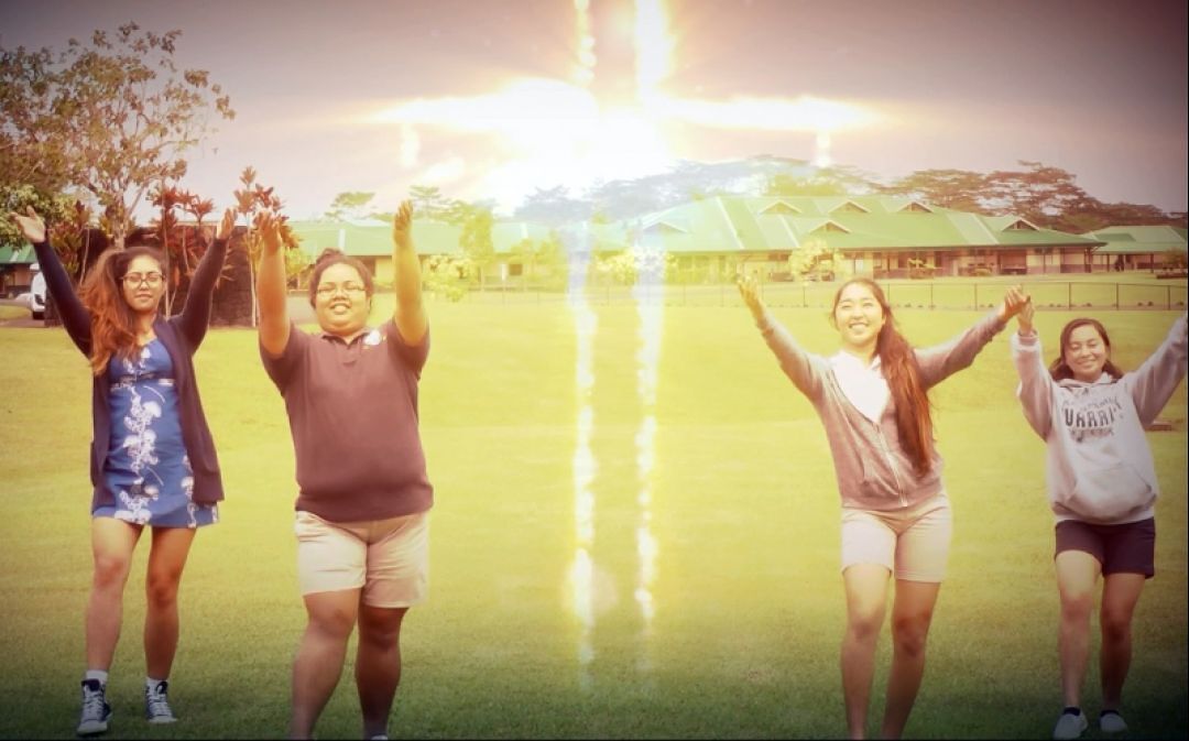 KS Hawaiʻi haumāna Mikaila-Beth Braun, Taylor Quinories, Taylor Uyetake and Kylie Manliguis dance to this week’s hymn, “Promises of God's Love.” Sing along by viewing the video below.