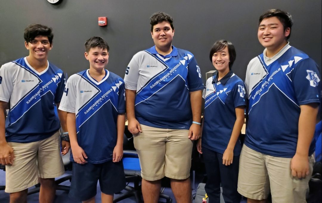 Team members are senior Elijah Scovel, juniors Chadwick Guerrero, Dylan Rosehill, Lehua Yoshida, and freshman Rion Chong. The e-sports program is coordinated and coached by electronic media arts kumu Nader Shehata and coach Auliʻi Nahulu.