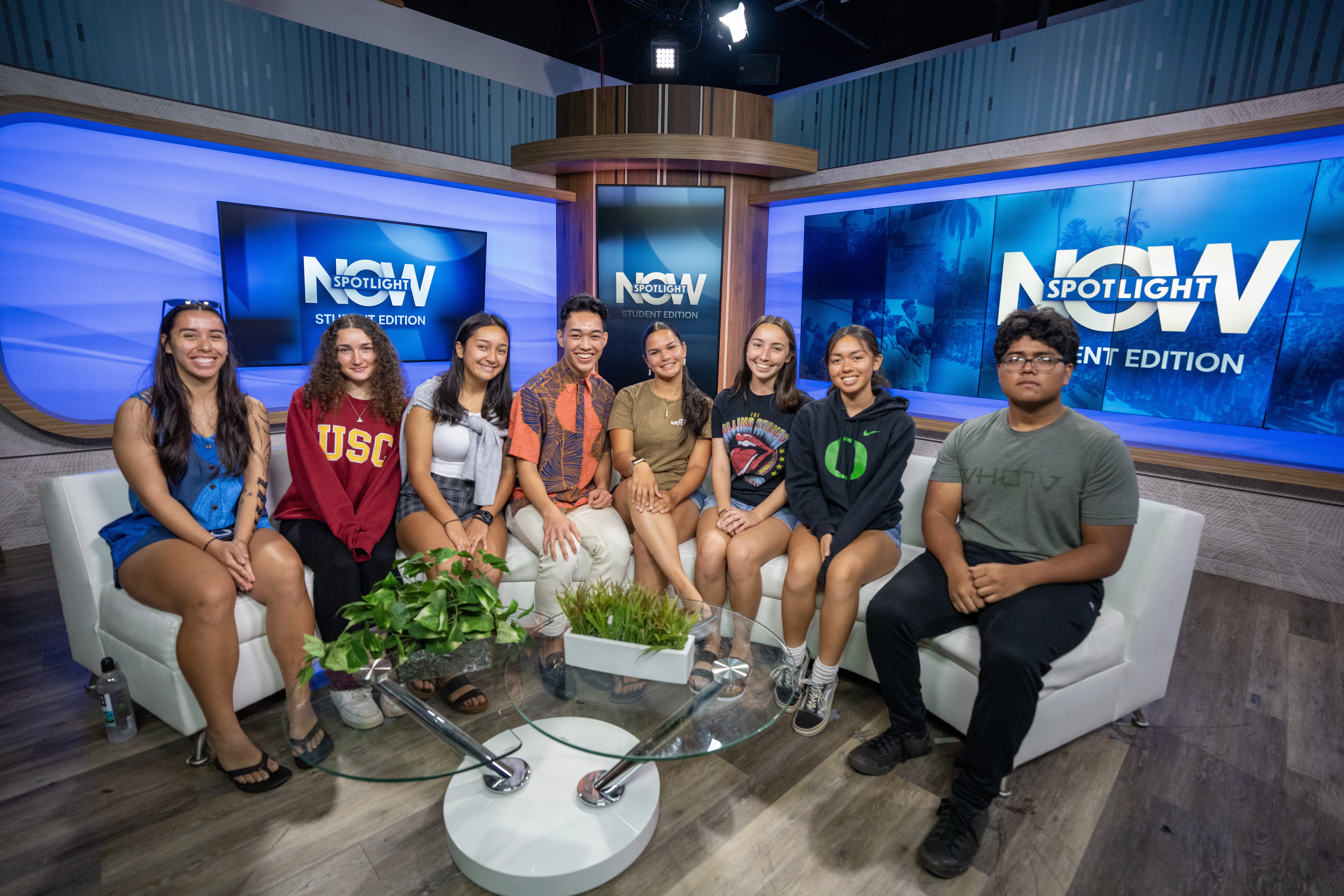 The student team from left to right: Kailie Kalepa, Leilani Vares, Hokūala English, Jai Viela, Kamalei Pahukula, Caroline Sloper, Kadence Merritt, and Ikaika Baccos collaborated on the Maui campus’ "Spotlight Now: Student Edition."