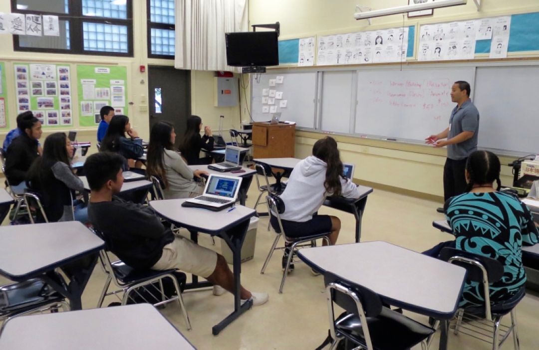In pursuing his game idea, Wong asked for and received advice from Director of Educational Technology Services Darrin Sato and worked with Senior Instructional Technology Specialist Alan Tamayose who helps the language departments on KS Kapālama with their technology needs. Tamayose then made the connection to Japanese language kumu Masahiro Yamaguchi, who agreed to serve as a subject matter expert for the project Wong had in mind.