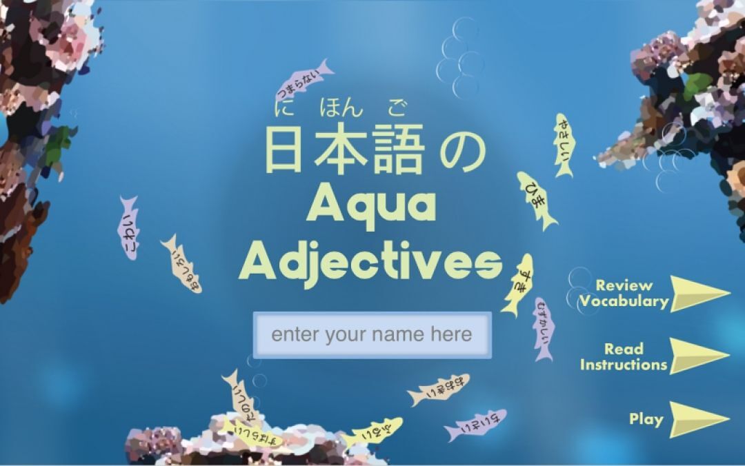 Try your hand at Wong’s interactive fishing game, Aqua Adjectives.