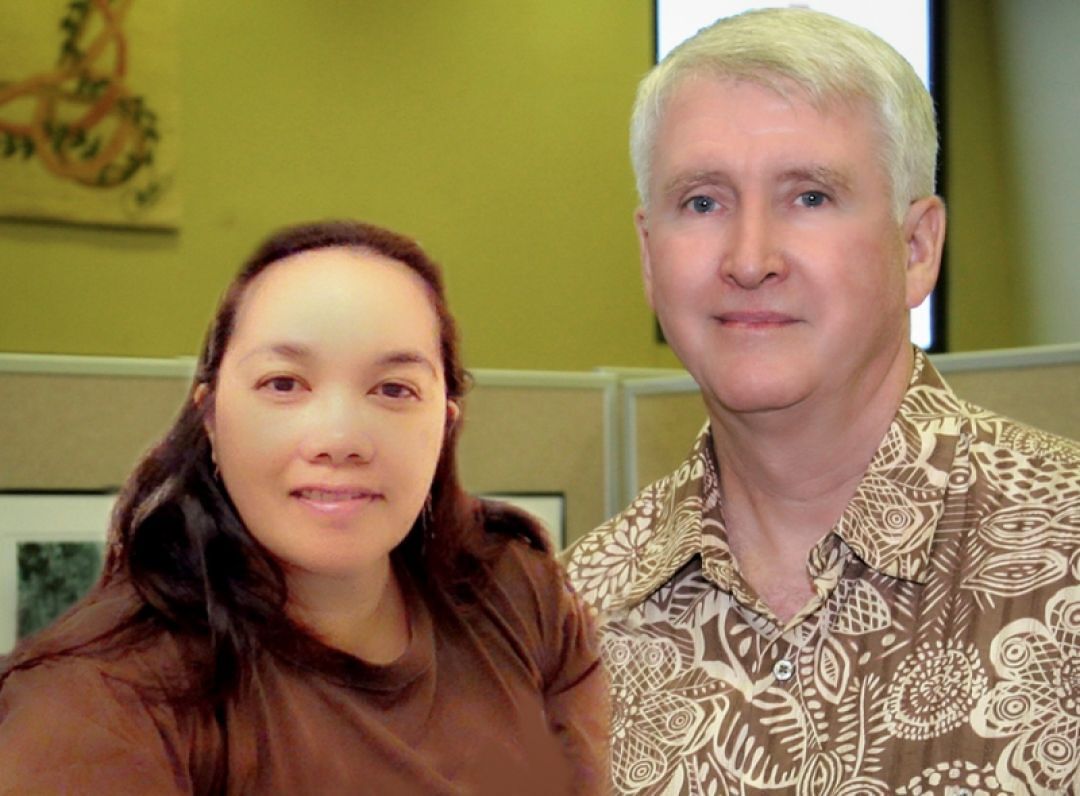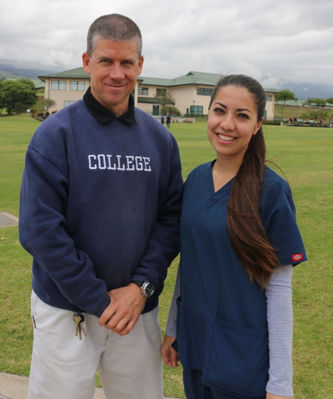 KS Maui Health Services Assistant Rachel Patrick (R) says that her former world history kumu Kevin O'Brien's teaching methods are "Top notch!"