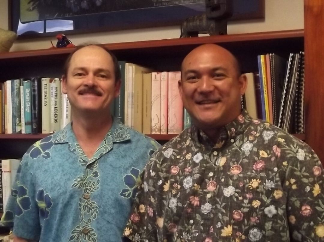 KSH HS Vice Principal Phil Aganus (R) says his former Hawaiian culture kumu Dr. Holoua Stender passed on his passion for ʻike Hawaiʻi (Hawaiian knowledge).