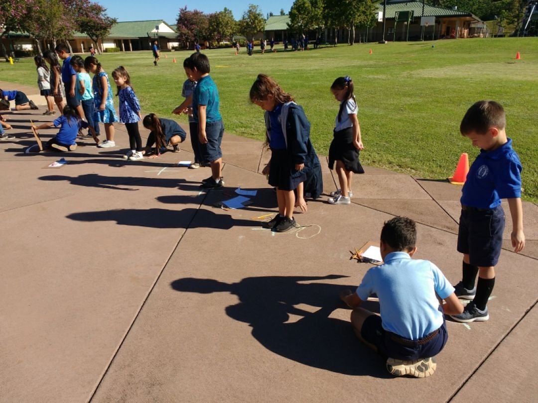The students will be measuring how their shadows change length throughout the day.