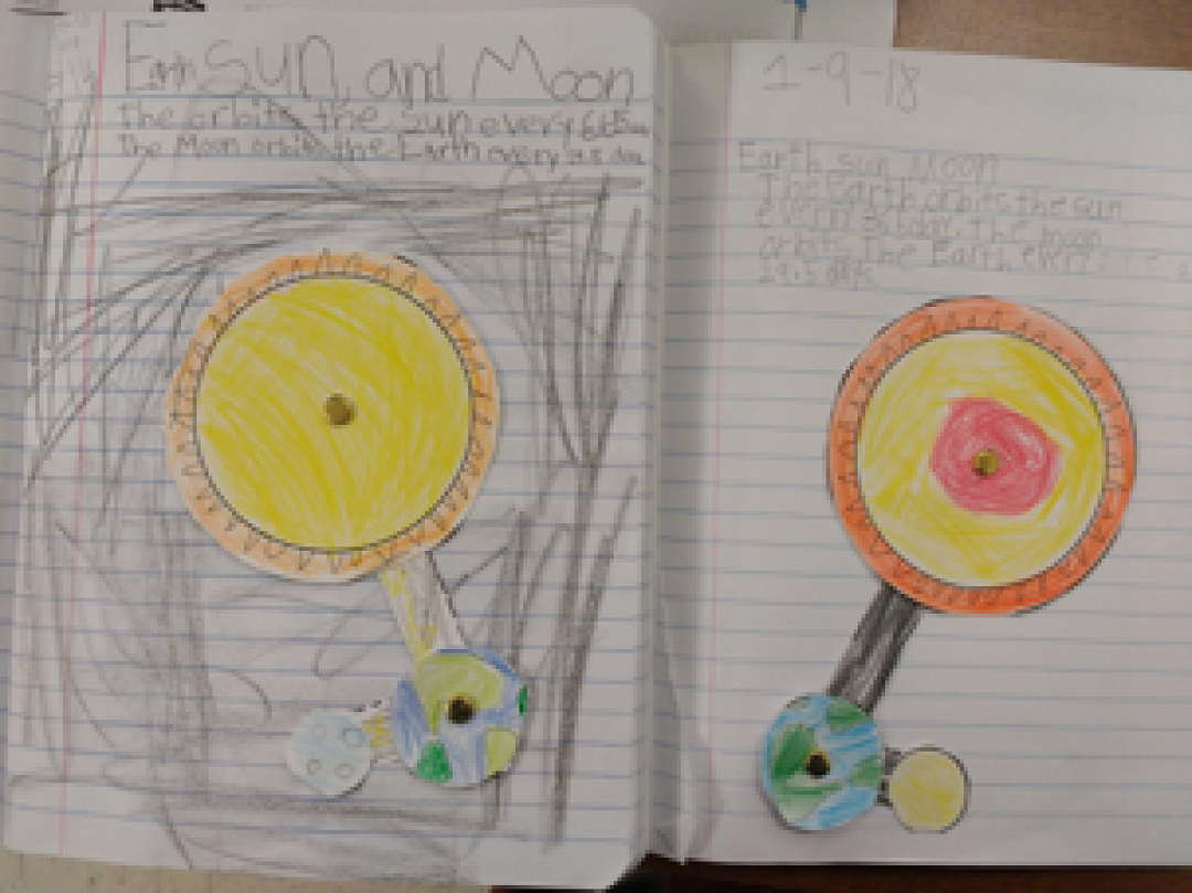 First Grade, just started their Sun, Moon and Stars unit. They just completed a model to show them that the Earth orbits around the sun and the moon orbits around the Earth. They showed great enthusiasm while making these models. Now, they are examining the sun. They conducted an experiment to see if their shadow changes during the day. The students will be measuring how their shadows change length throughout the day.