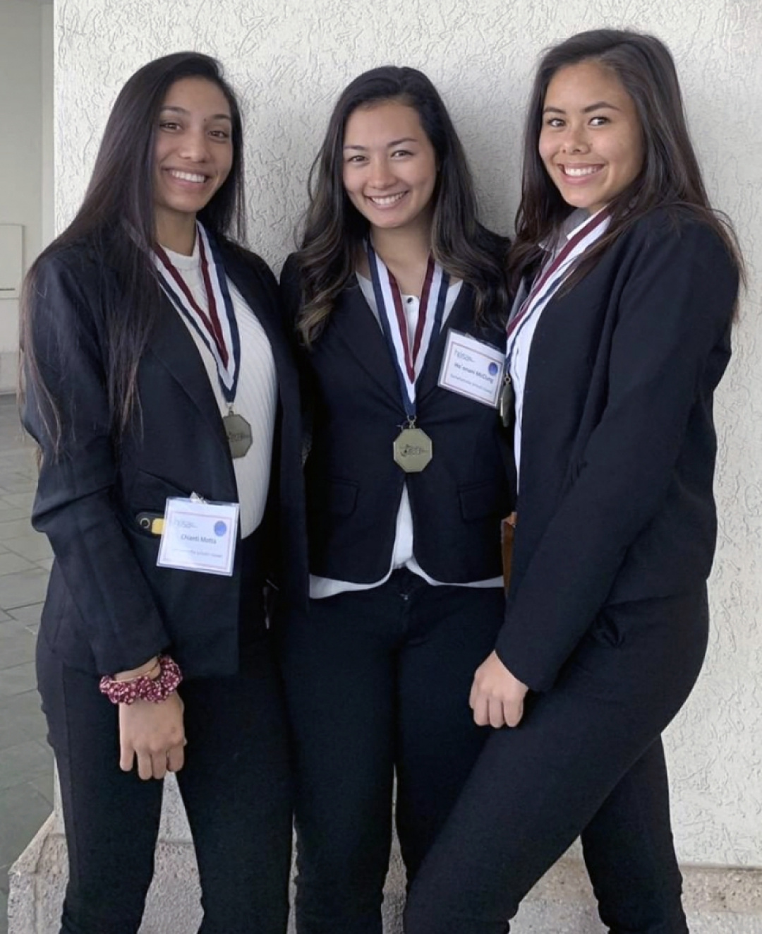 Seniors Kiki Motta, Hoʻonani McClung, and Nanea Delostrico earned a gold medal in the Public Health category.