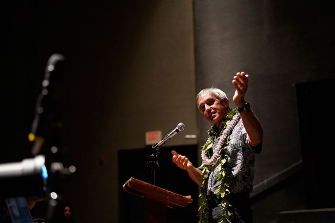 Master navigator Nainoa Thompson opened the 18th edition of the event with an assembly at the Princess Ruth Ke‘elikōlani Performing Arts Center and spoke about Veach’s contributions in his work at NASA and how he helped inspire traditional Polynesian voyaging canoe Hōkūle‘a’s worldwide voyage.