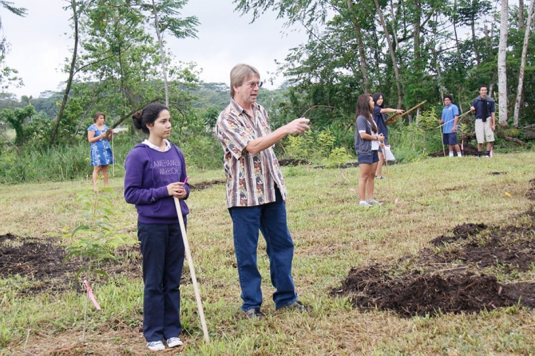 The chemistry is taught through a Hawaiian and environmental point of view. At the beginning of the year, the students learn the growing conditions for the canopy tree in a Hawaiian forest, acacia koa. Then, students are given koa seedlings to raise for three months.