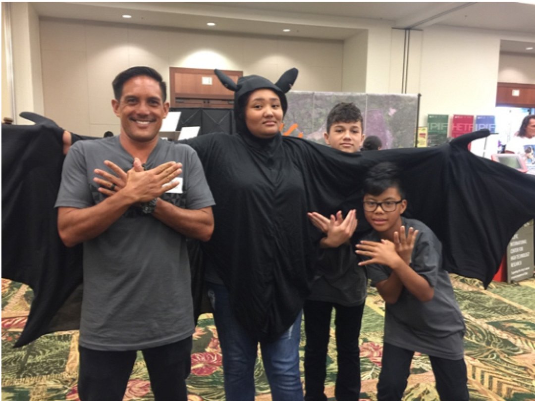 In the Spring of 2018, a group of select students formed Team ʻŌpeʻapeʻa. The objective of Team ʻŌpeʻapeʻa is to expose people to bat research and create experiences that elevate connections to the ʻaina and each other. On July 25, Team ʻŌpeʻapeʻa attended the Hawaiʻi Conservation Conference on Oʻahu, and shared an experiment that measured the effect of artificial light on bat activity. Pictured is Team ʻŌpeʻapeʻa in action at the HCC Conference in Oʻahu. You can also scan the QR code to visit Team ʻŌpeʻapeʻa’s official website.