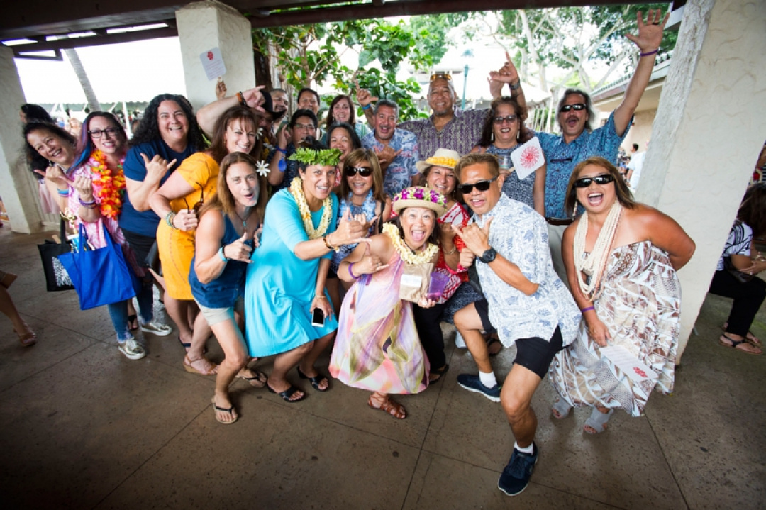 More than 3,500 Kamehameha Schools alumni took part in events, activities and pā‘ina during KS Kapālama’s recent Alumni Week. This year’s mass reunion welcomed alumni belonging to class years ending in three and seven. Above, classmates ham it up at the Alumni Lū‘au on Kōnia Field.