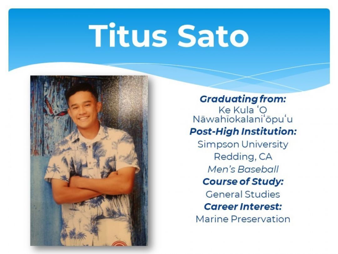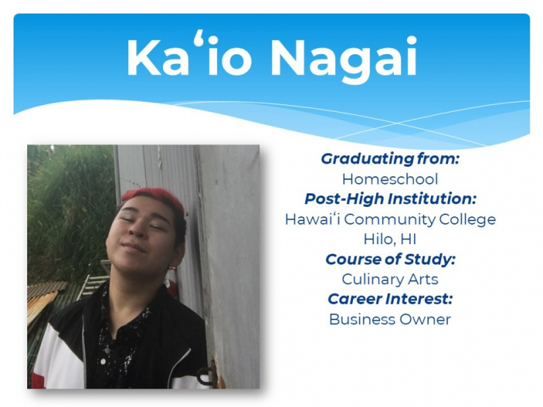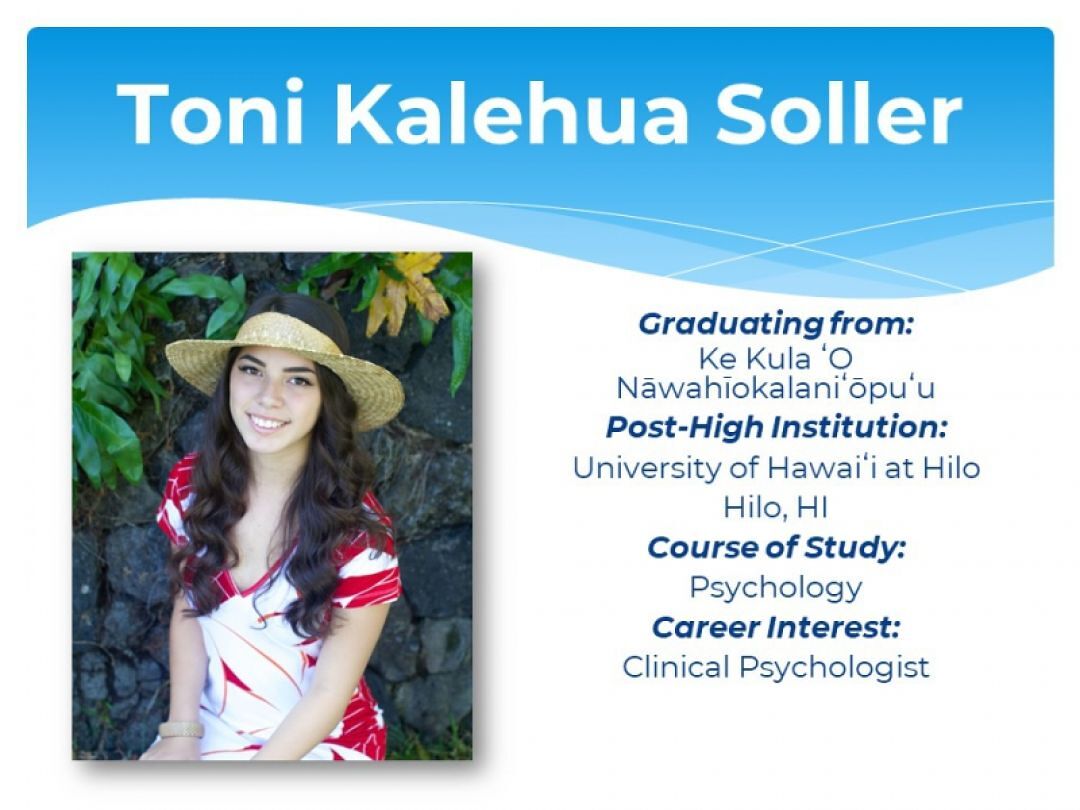 “Even though my time as a senior at Kamehameha Scholars has come to an end I would like to say ‘E naʻi wale nō ʻoukou i kuʻu pono, ʻaʻole pau,’ famous words that Kamehameha I said. It means to keep striving forward for what is pono.”