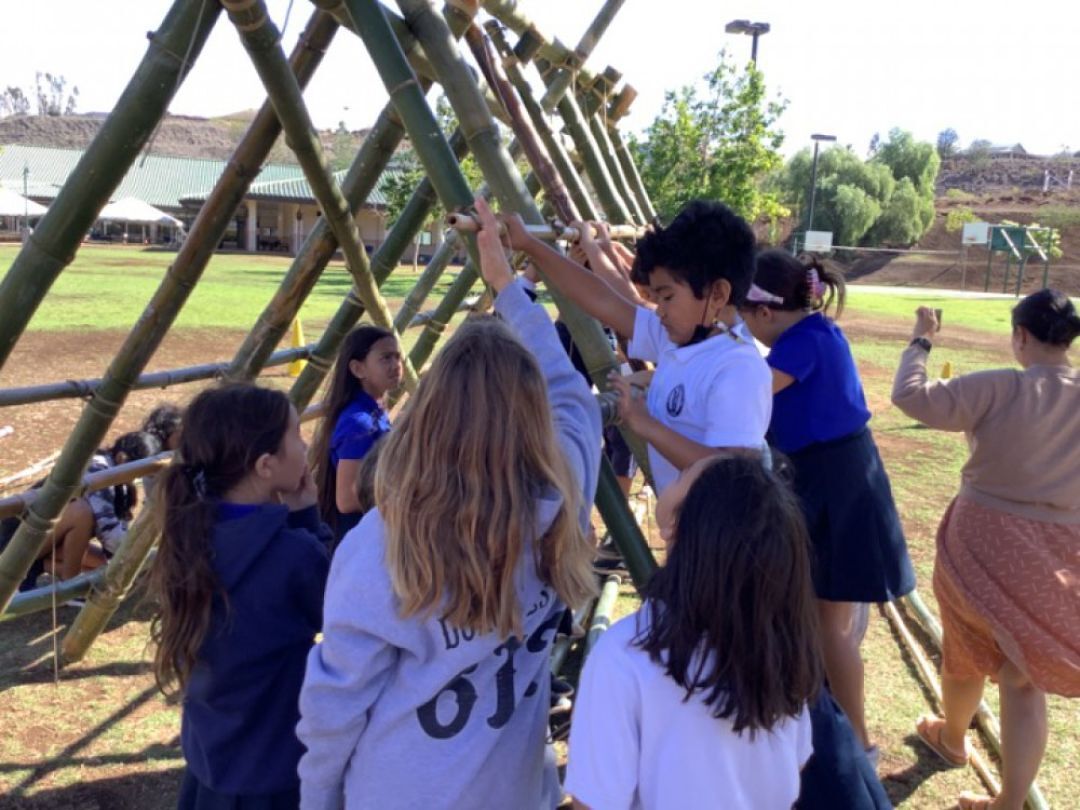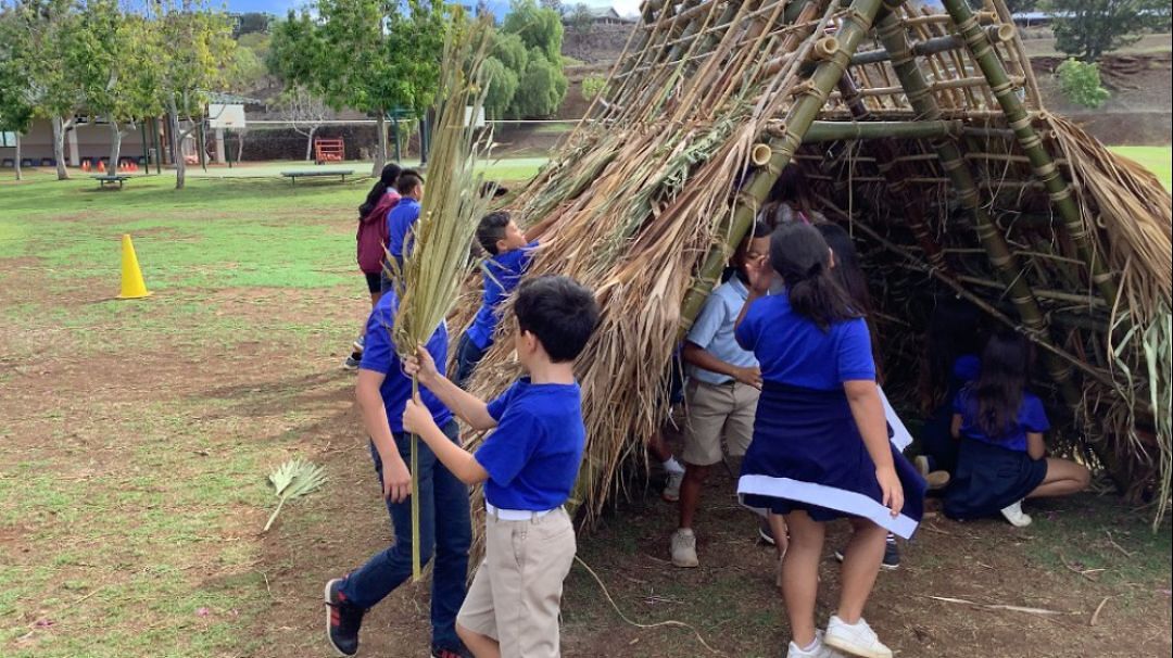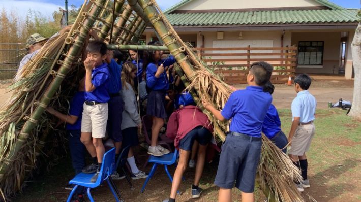 The kumu set an ambitious 12-day building timeline, beginning on Nov. 21 and culminating with a blessing on Dec. 7. Materials were donated from local farms and community partners. Haumāna embraced the challenge fully, using their recess and lunch periods to put work into the hale. Many even begged their parents to bring them to school early to work on the hale.