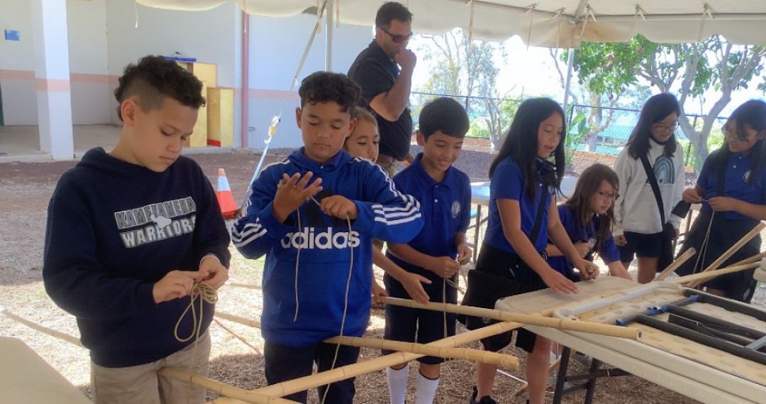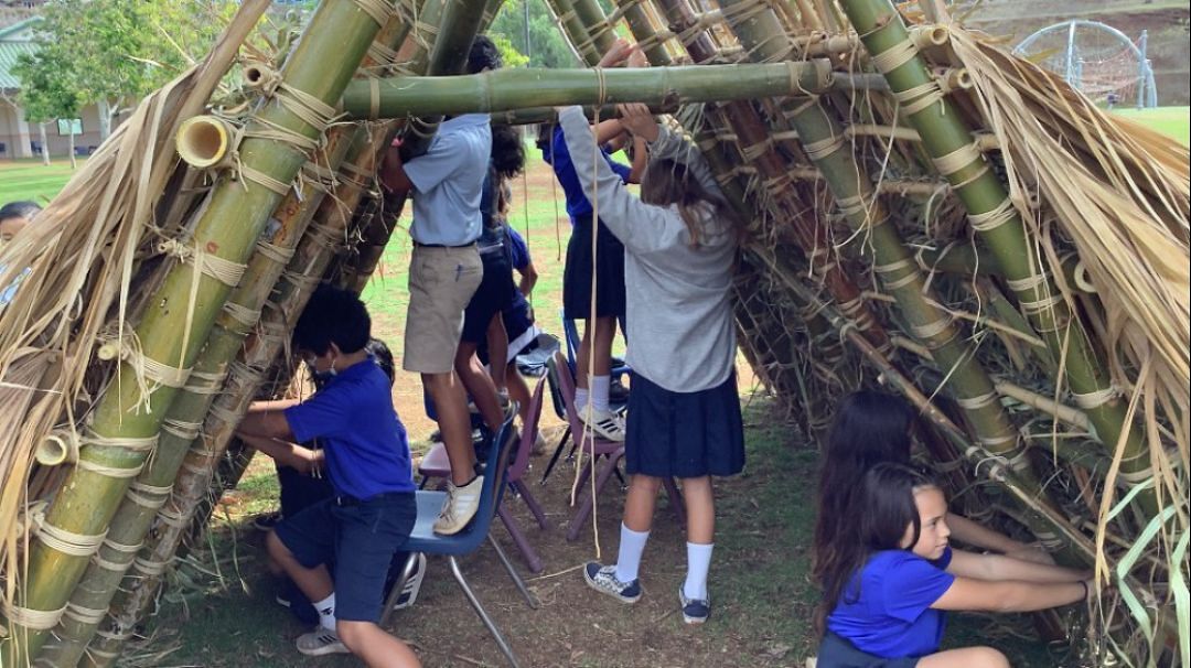 When ‘āina engagement Kumu ʻIwikauikaua Joaquin collaborated with science Kumu Edwin Otani to get Māhele Lalo fourth- and fifth-graders building a traditional hale waʻa on campus, neither expected the enthusiasm their haumāna would exhibit for the project.