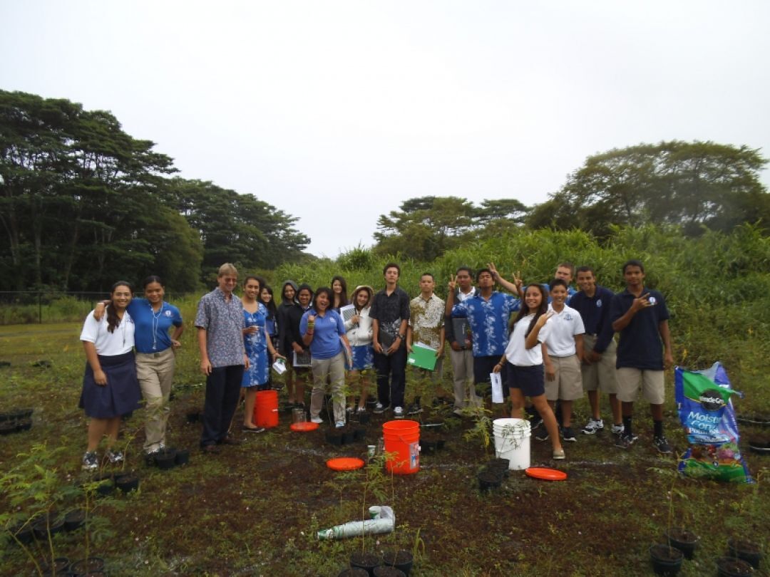 Mr. Truesdell's chemistry class at the start of the Koa Reforestation Chemistry Project. Learn more about this endeavor in the ʻŌiwi TV: Teaching Chemistry Through Culture video below.