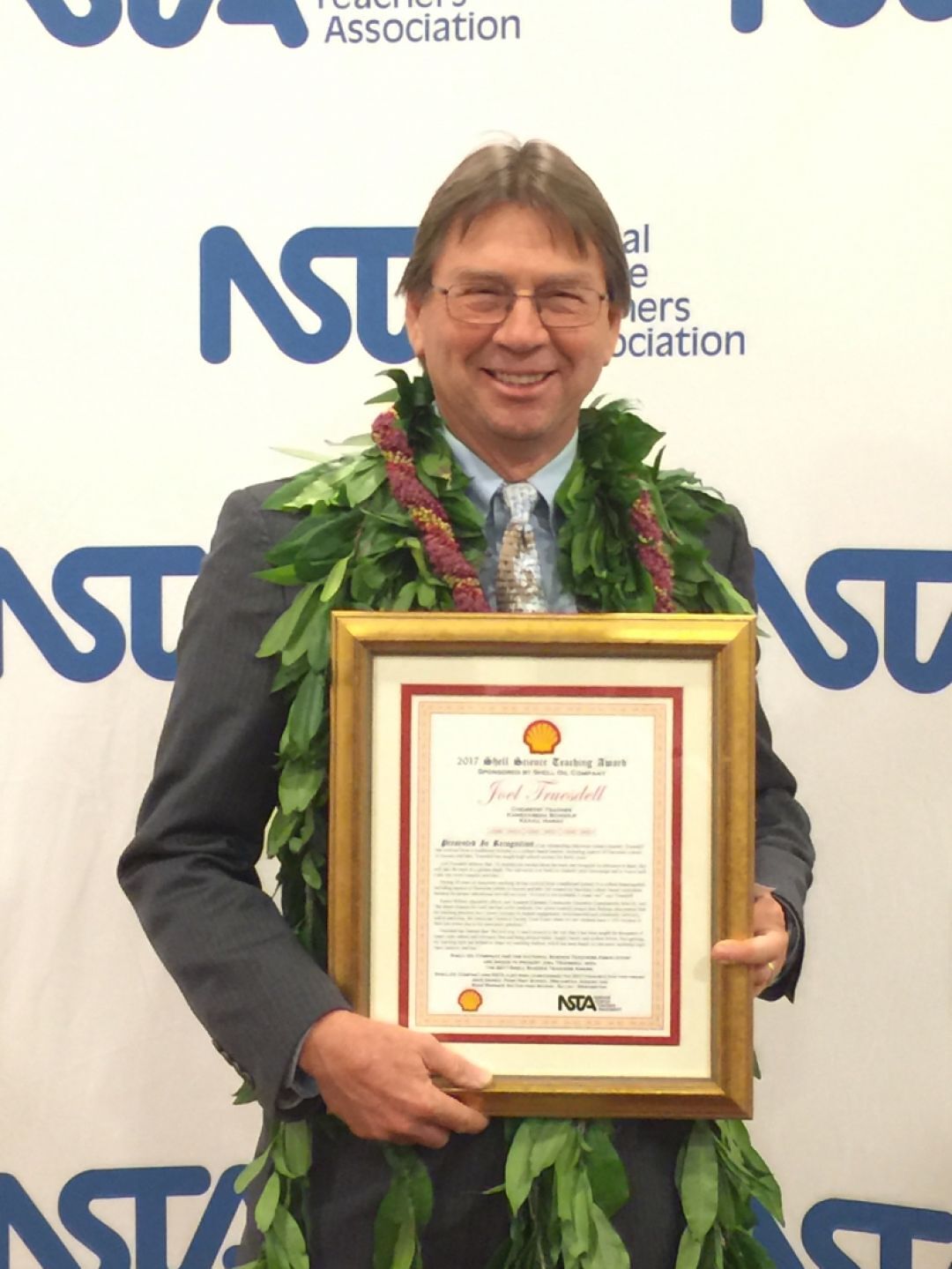 Kamehameha Schools Hawaiʻi campus chemistry teacher Joel Truesdell was awarded the 2017 National Science Teachers Association(NSTA) Shell Science Teaching Award at the NSTA’s Teacher Awards Gala on Mar. 31 at the JW Marriott LA Live in Los Angeles.