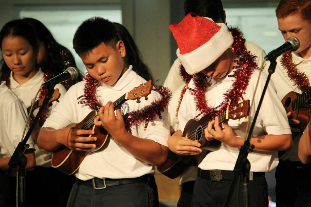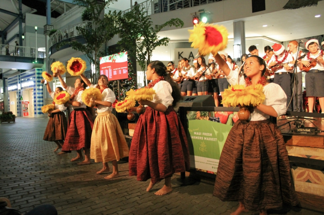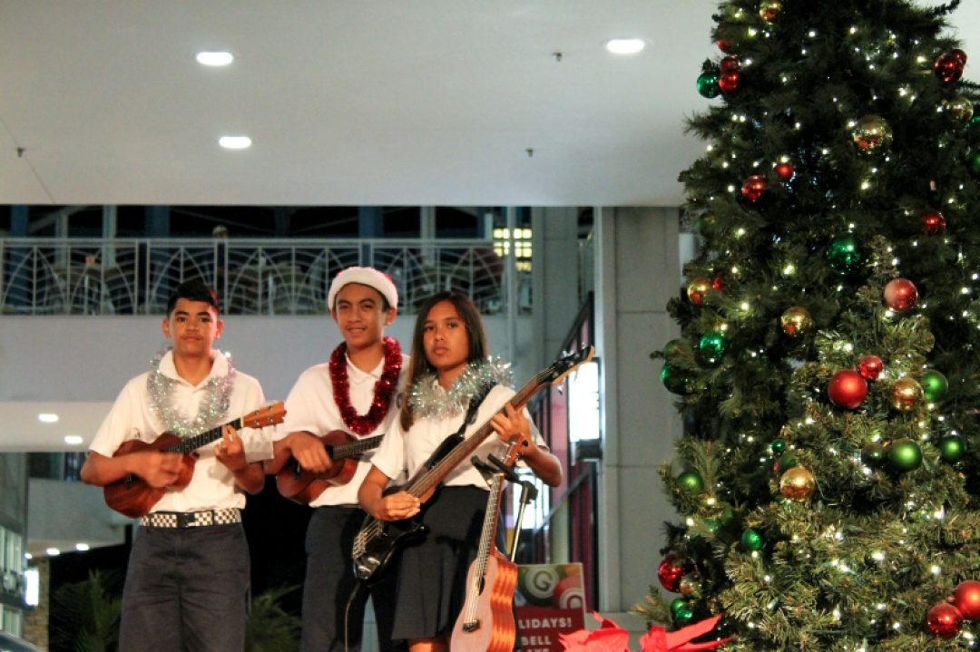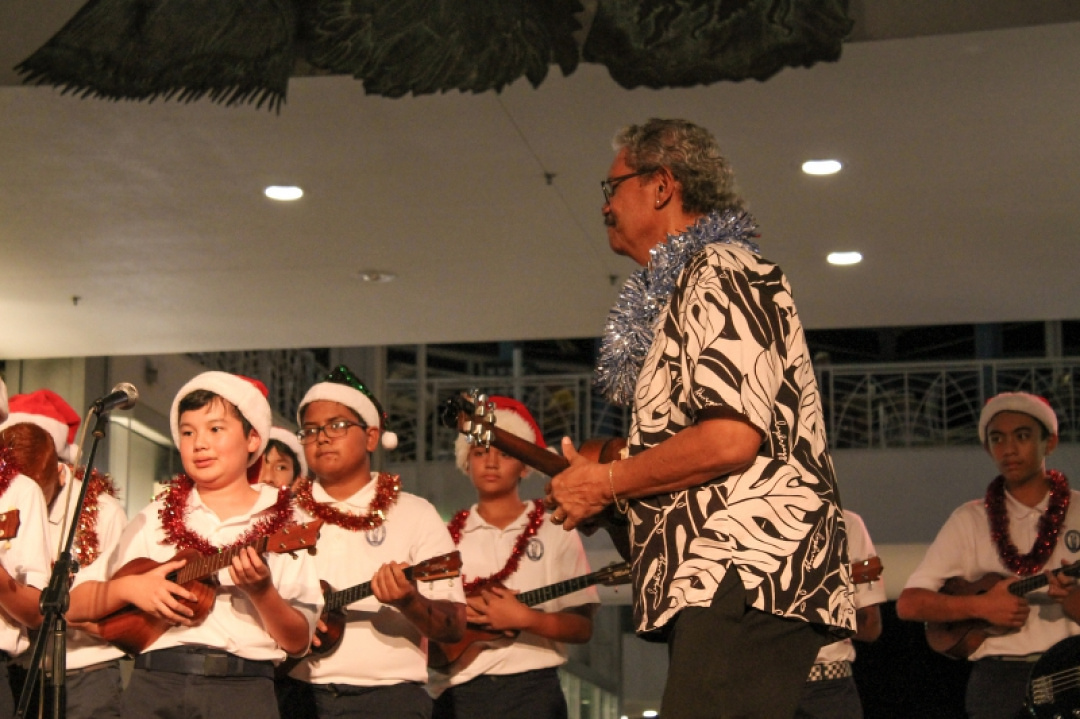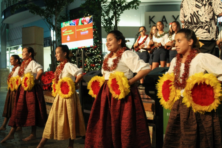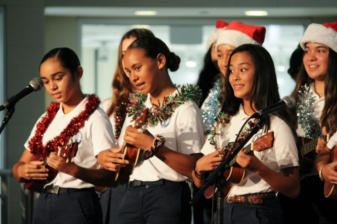 The night was filled with the sound of ukulele’s and our haumānaʻs voices as they performed for an audience and shopper as Queen Kaʻahumanu Shopping Center Wednesday night and accompanied by the MS E mi mau class. The 8th-grade Ukulele class was accompanied by their fellow 7th-grade classmates as they played a 17 song set which included Christmas music and hula. The crowd enjoyed the performance and our haumāna played their instruments with joy and danced beautifully. Big mahalo to Kumu Camarillo & Kumu Hoewaa for their dedication to our haumāna. Their performance is a reflection of their love for the ukulele, hula, and educating our haumāna.