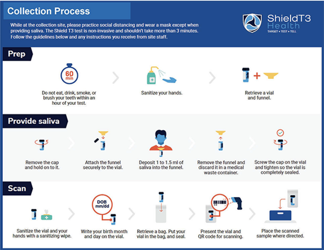 See instructions provided by Shield T3 about how to provide your sample. Scanning will take place after drop-off.