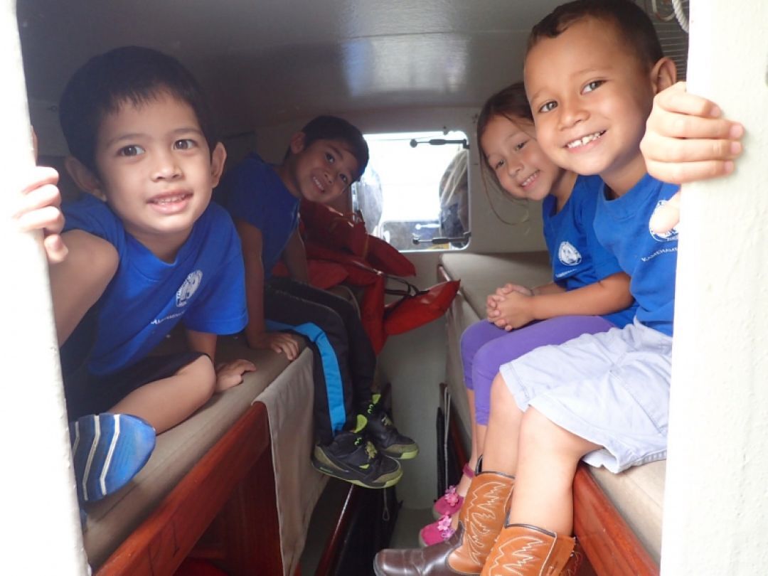 Preschoolers test out some bunks aboard Hikianalia.