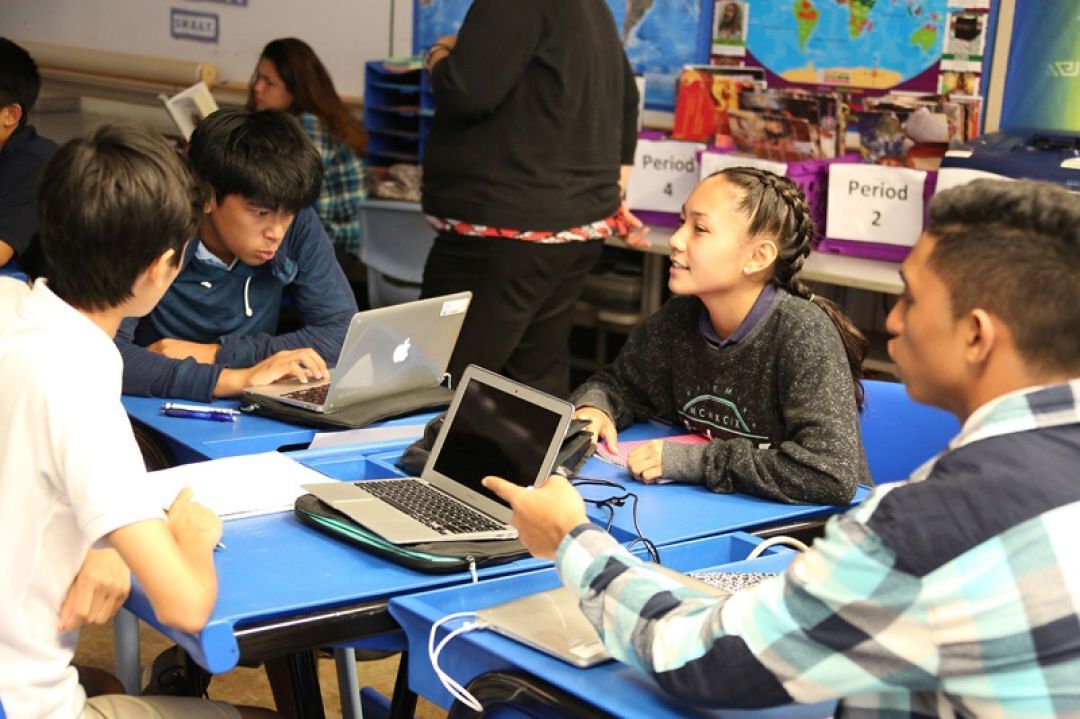 Working in table groups, students discuss what their takeaways are and work together to create a follow-up question.