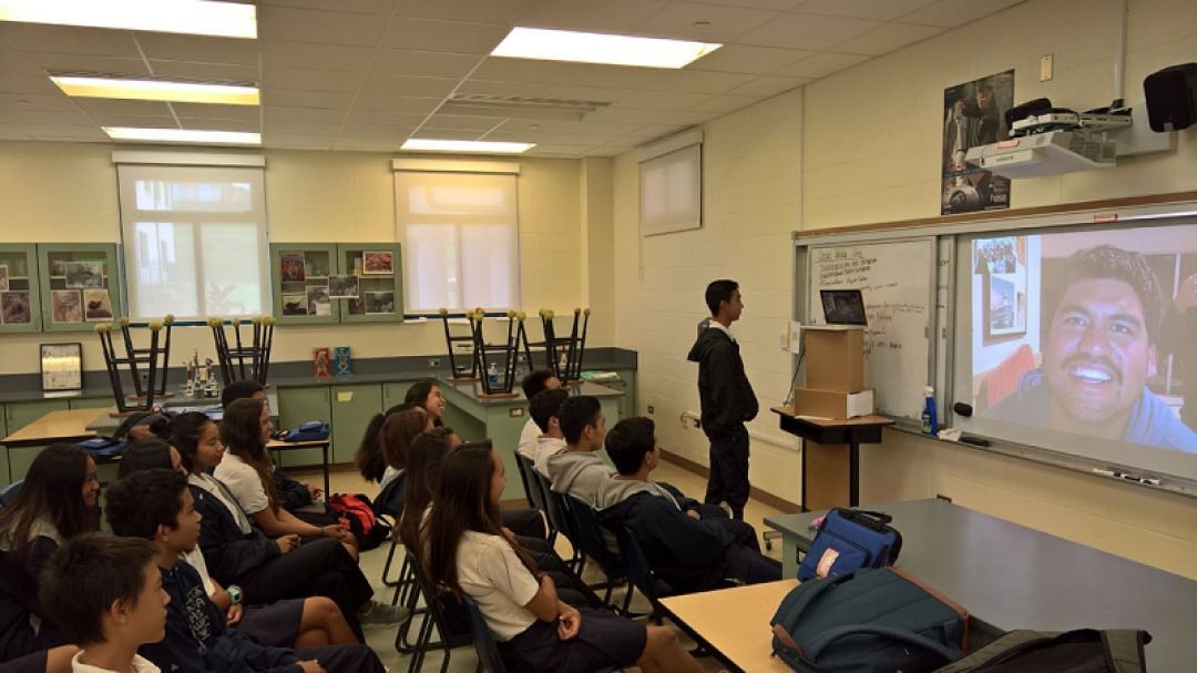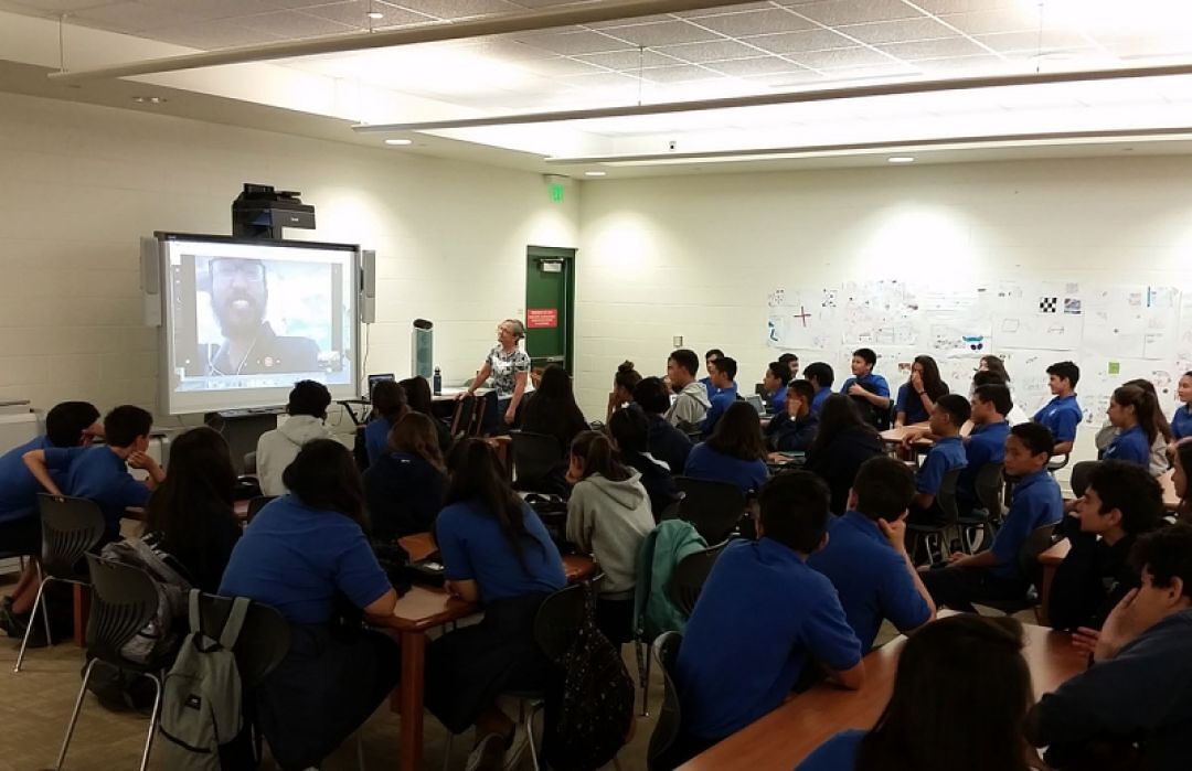 Akana's World History class reconnects with KS senior program manager before Captain Perkins is introduced.