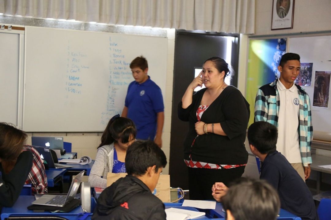 KSK kumu Hōkū Akana asks students to think about leadership traits when they create their follow-up questions for their next Waʻa to Papa session.